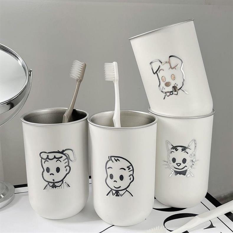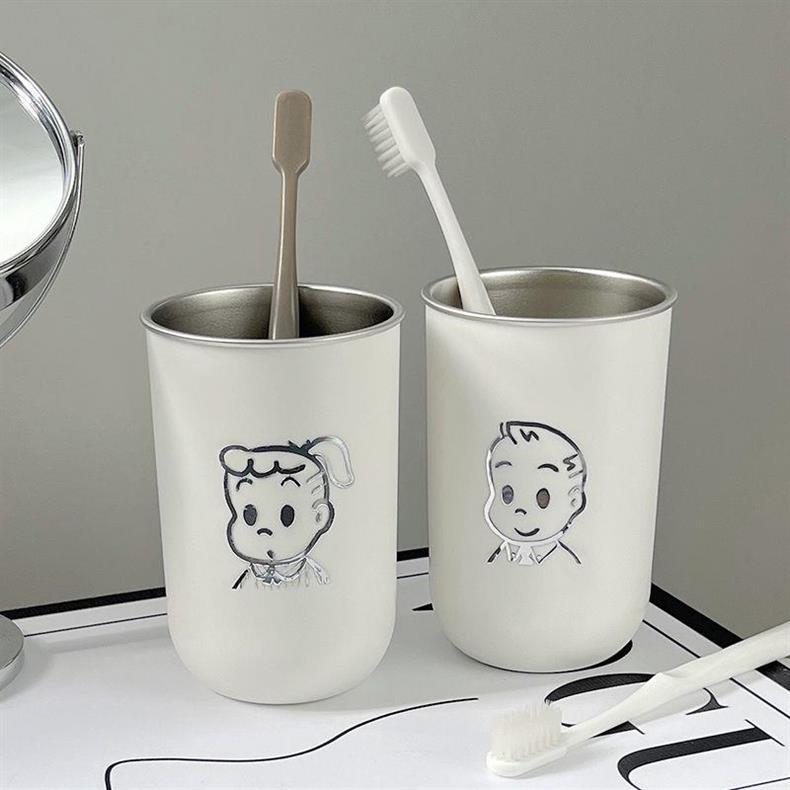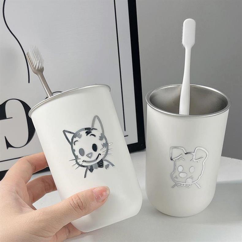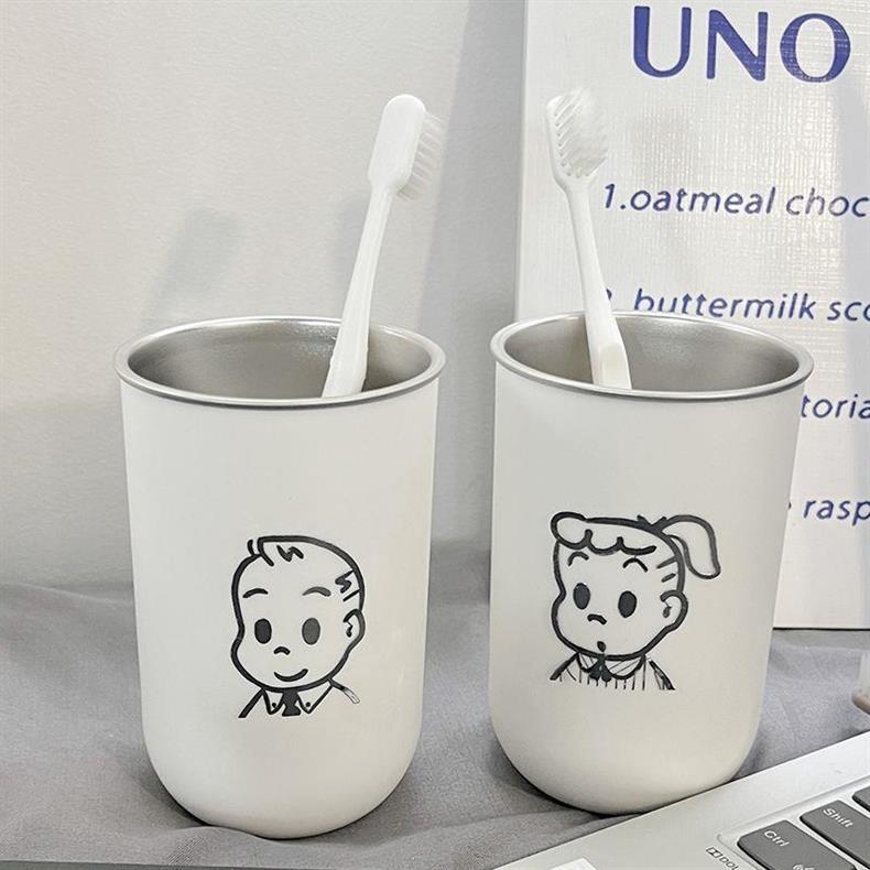 Чашка для полоскания рта и зубов, пара чашек для полоскания рта, чашка из нержавеющей стали 304, красивая милая мультяшная чашка для мытья в дорожном размере