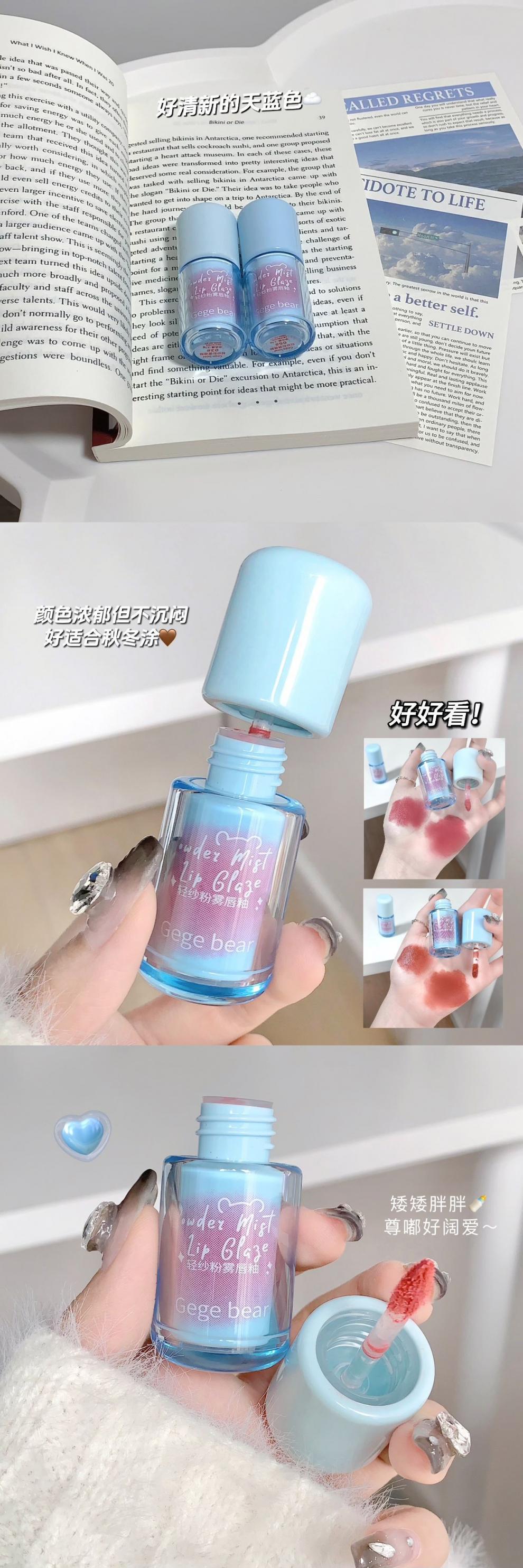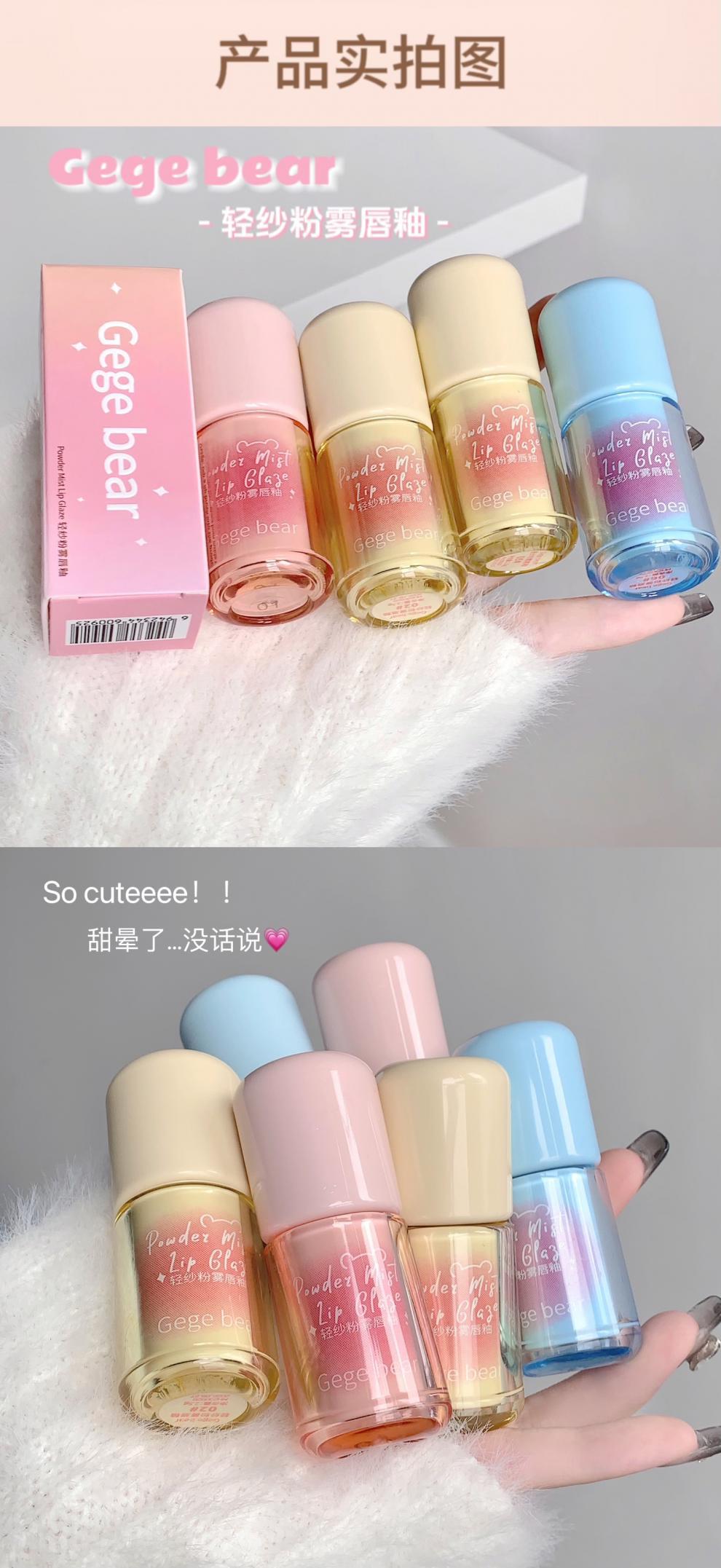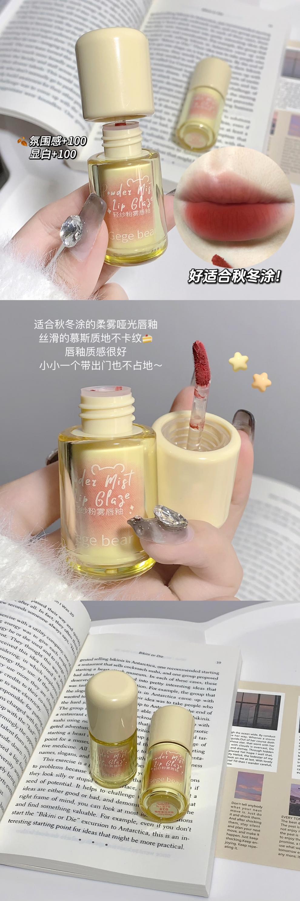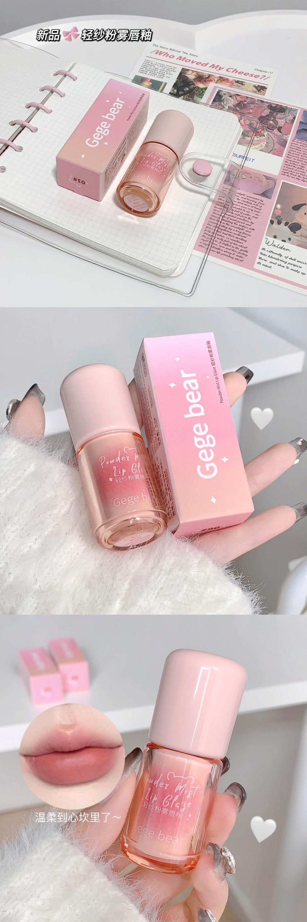 Губная помада Gege bear Gege bear, легкая пудра-мист, бархатная матовая, осенне-зимняя, отбеливающая, не липкая.