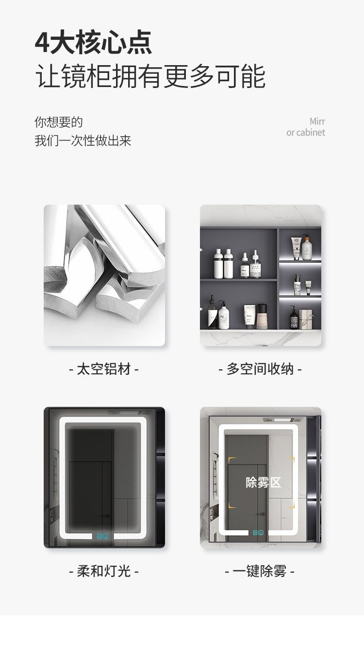Зеркальный шкаф для ванной комнаты Changhong, стеклянная дверь, косметический зеркальный шкаф, отдельный настенный умный светильник для ванной комнаты, противозапотевание