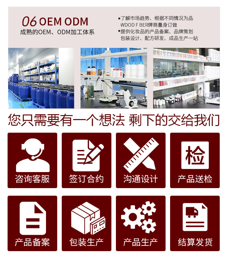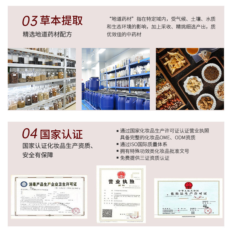 工厂手续齐全,合作过几万家大大小小美容院、品牌商,可以给客户代办各类证件,保证产品在市场销售合法合规!