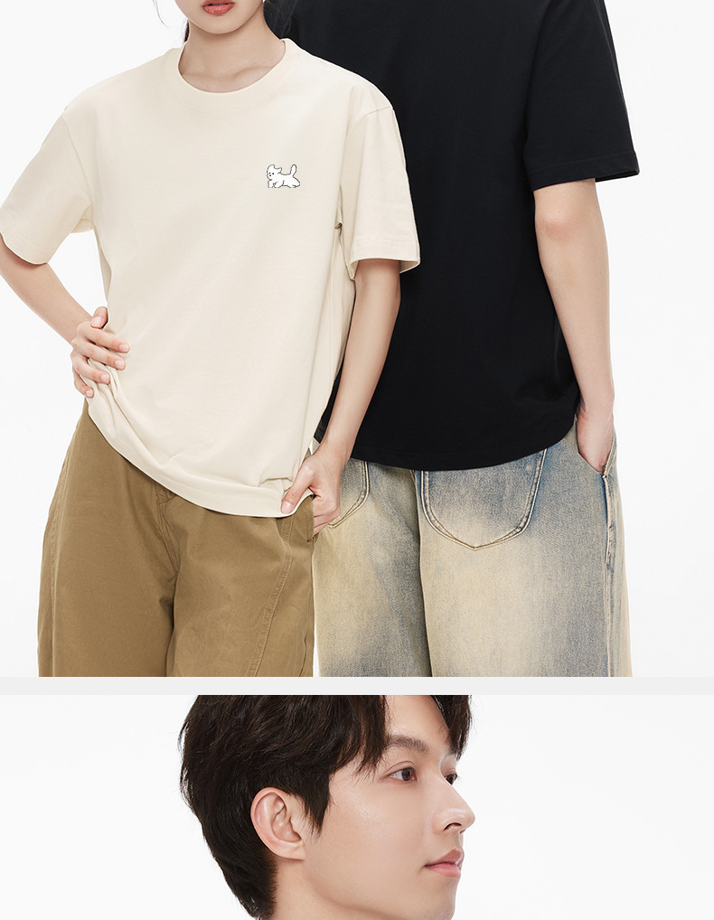 "Хлопковая эстетика" абрикосовая допаминовая футболка белый топ с хлопком с короткими рукавами, дикая простая одежда ~