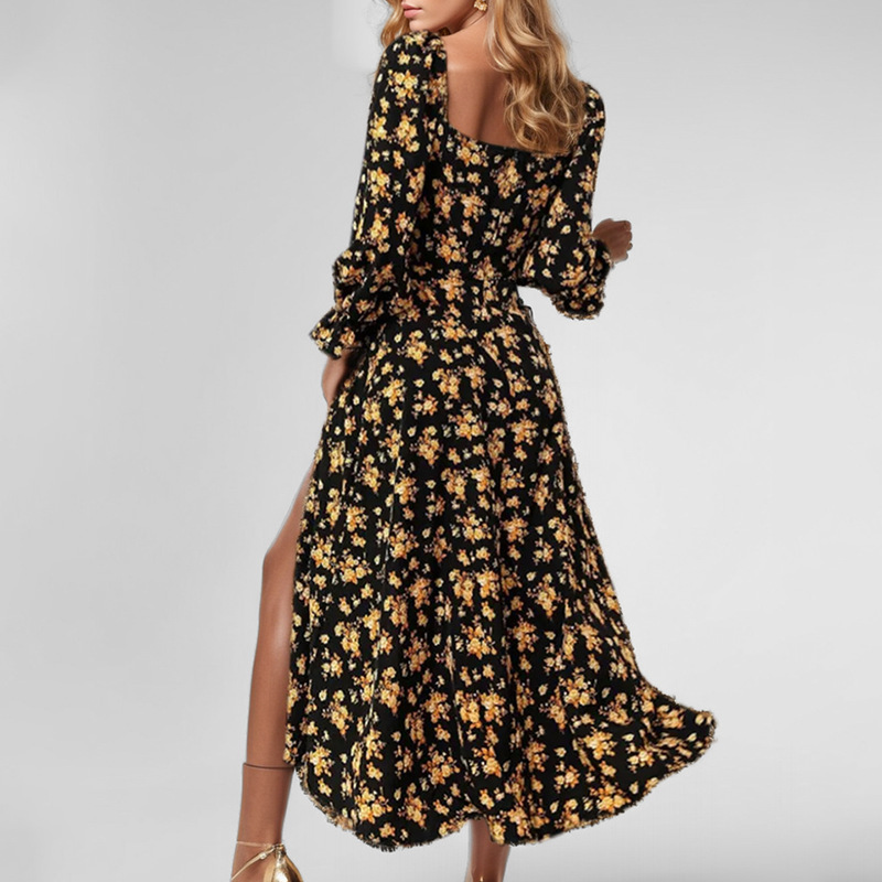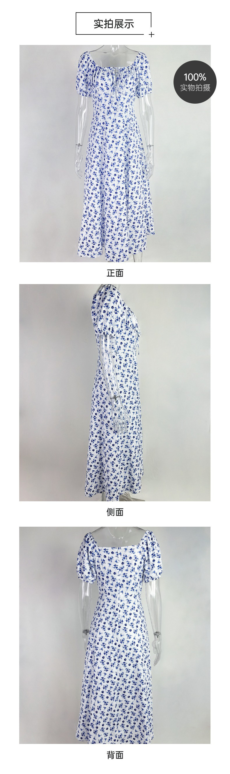 2025 Весна Новинка Amazon Европейские и Американские Женские Печатные Французские Цветочные Платья с Открытой Спиной, Тонкими Бретелями и Разрезом.