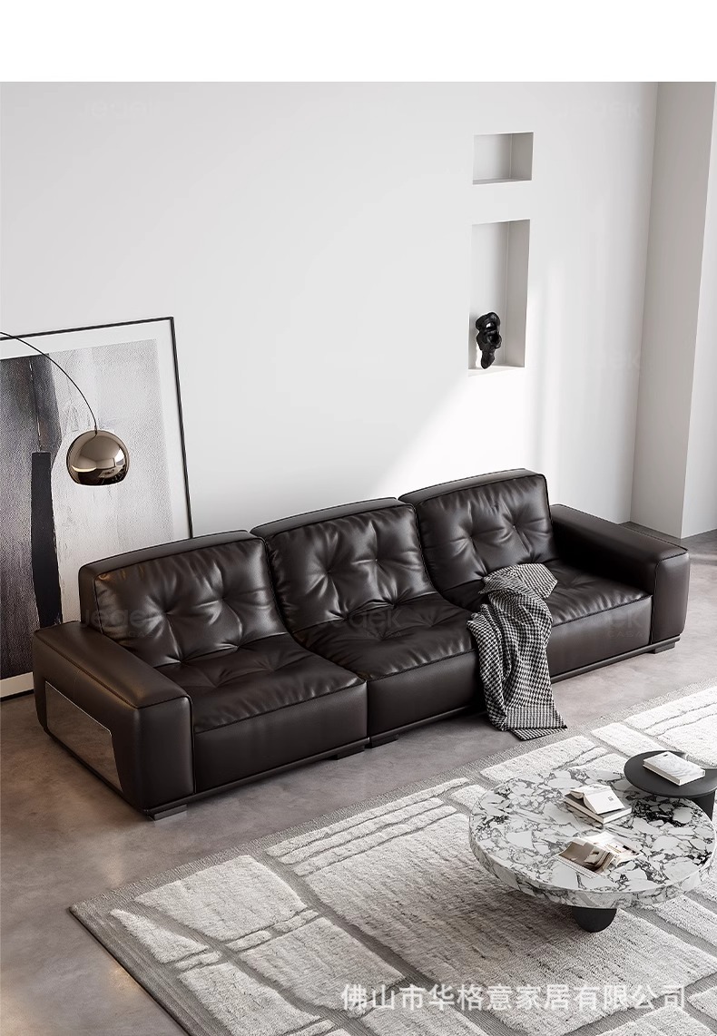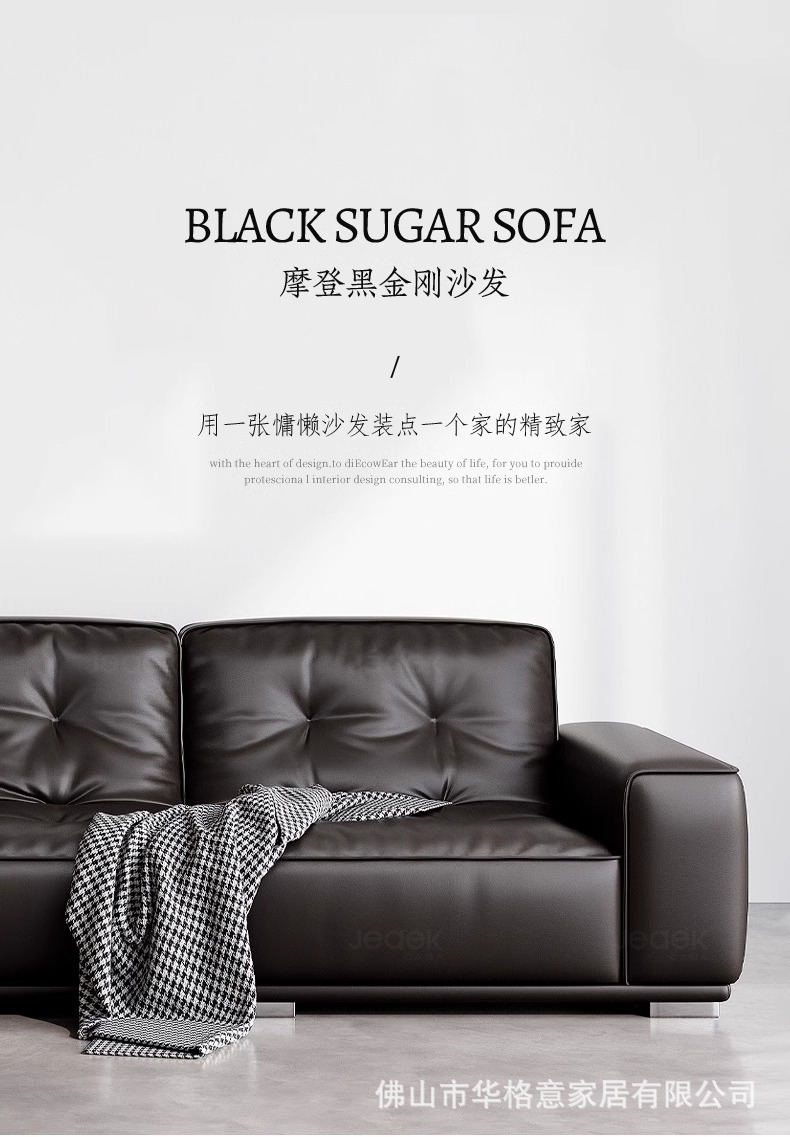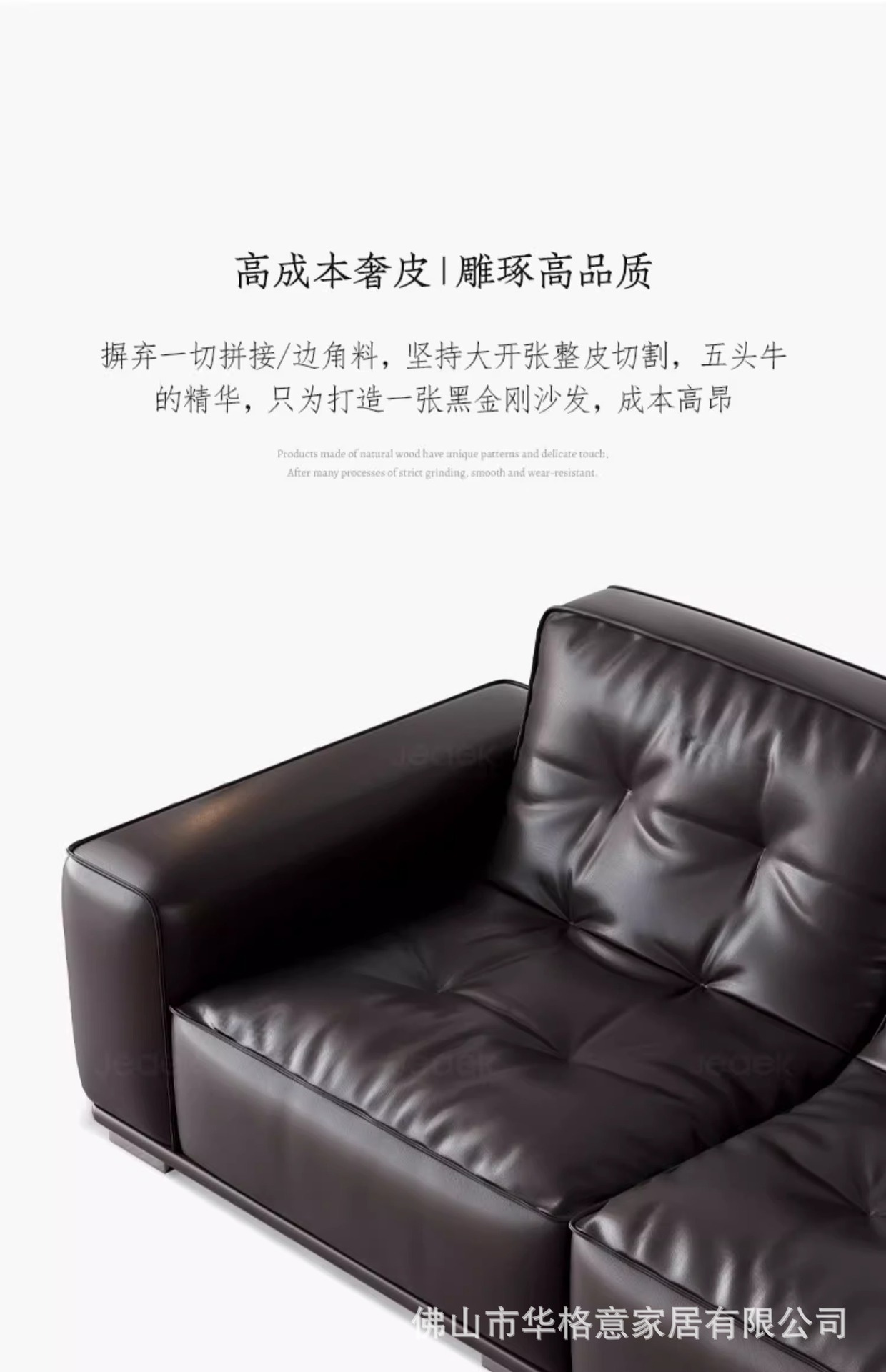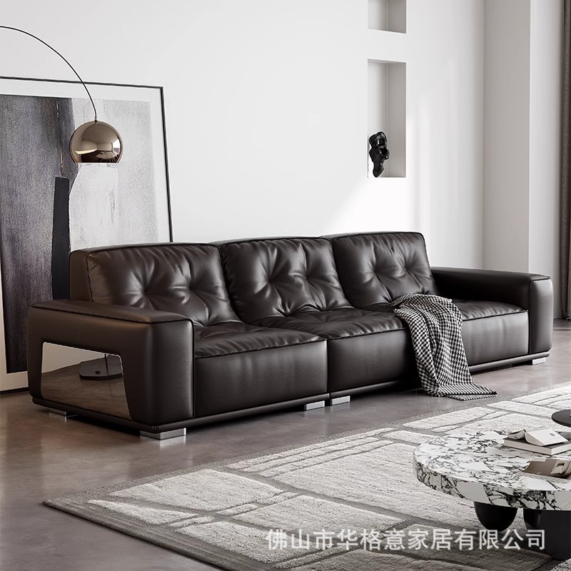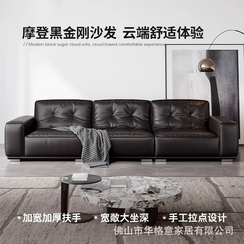 Диван для гостиной из массива дерева и кожи, современный минималистичный стиль, Foshan, на 3-4 человека, прямой ряд, первая слой коровьей кожи, черный ромбовидный диван