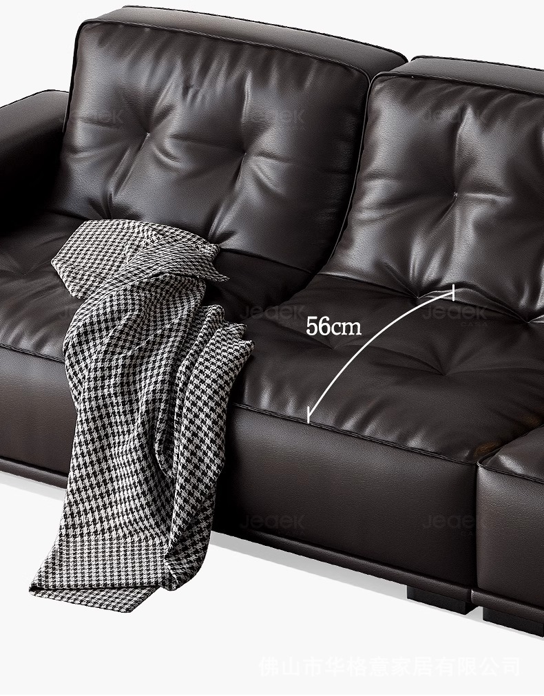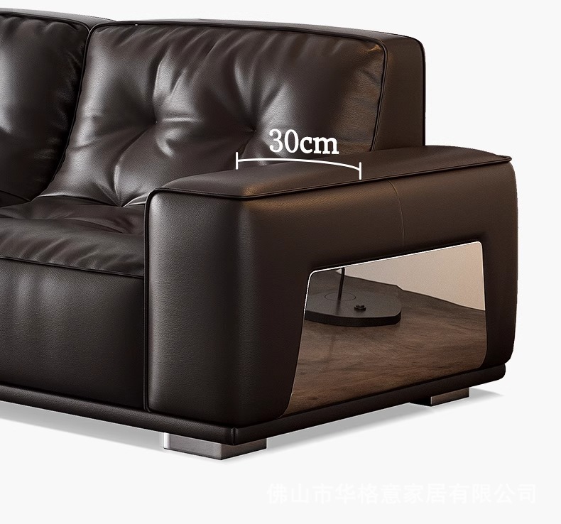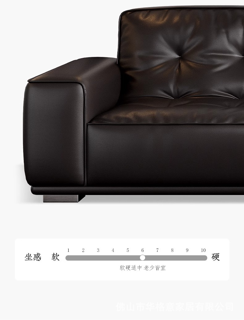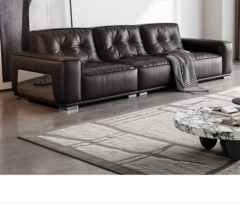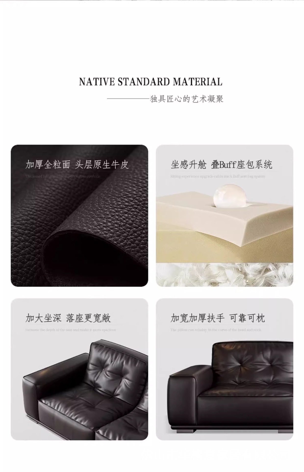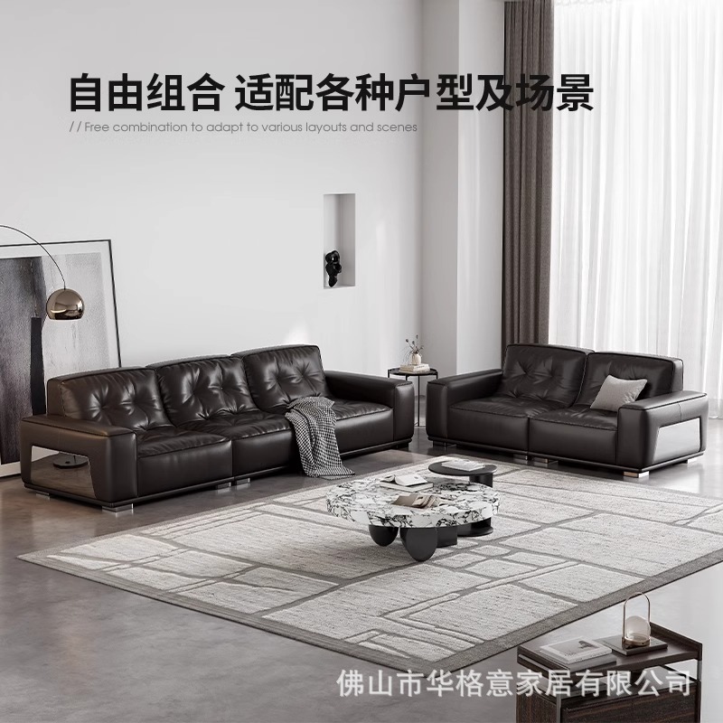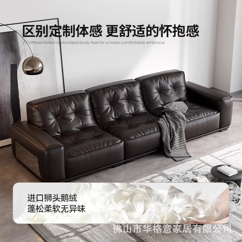 Диван для гостиной из массива дерева и кожи, современный минималистичный стиль, Foshan, на 3-4 человека, прямой ряд, первая слой коровьей кожи, черный ромбовидный диван