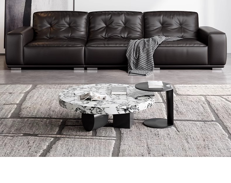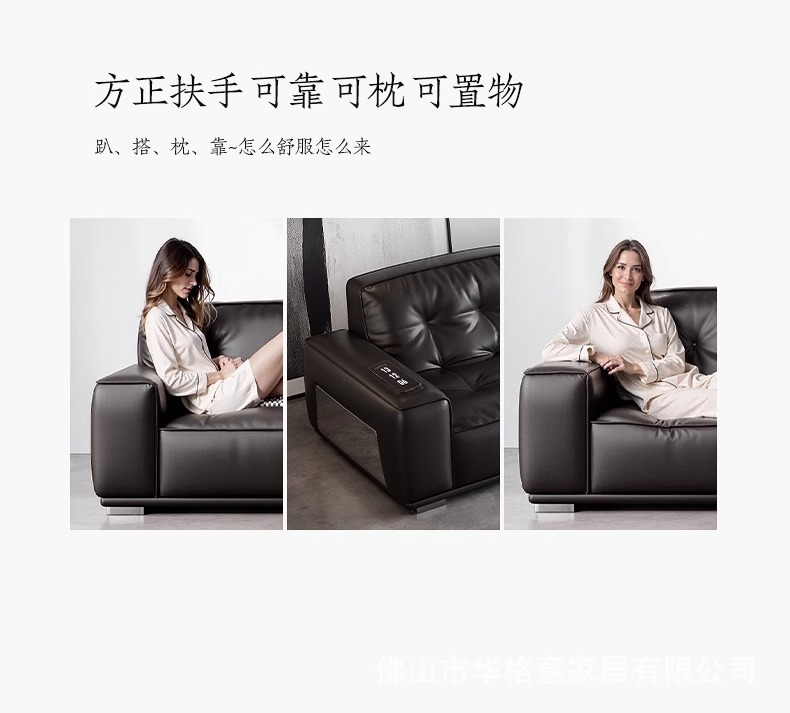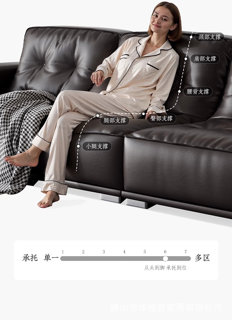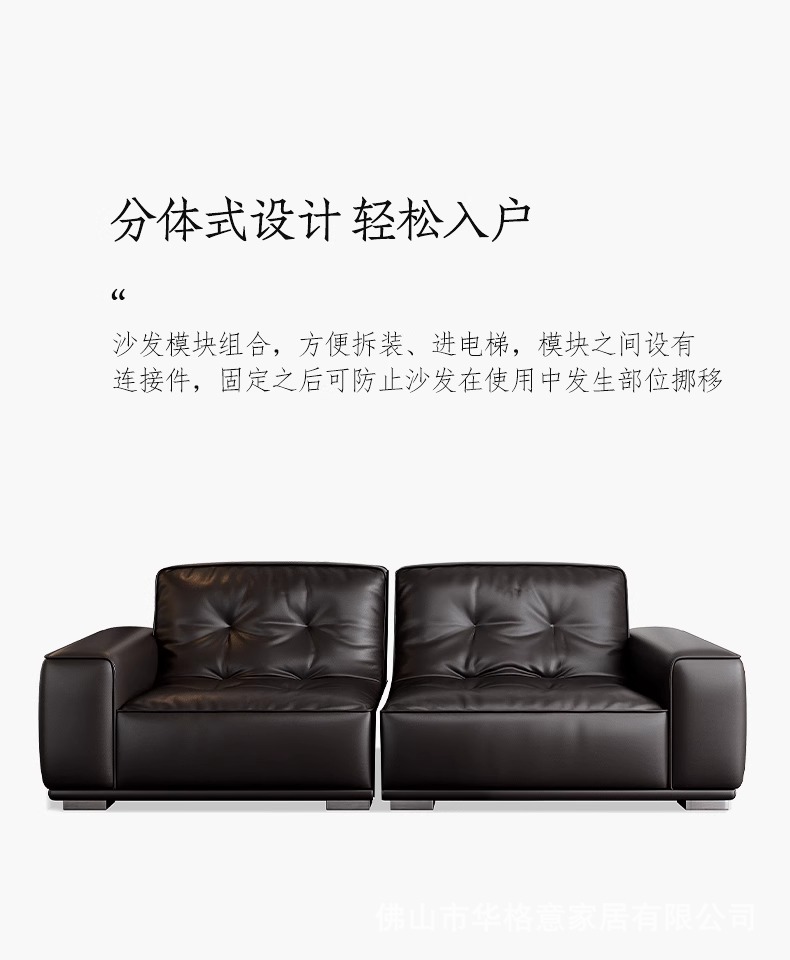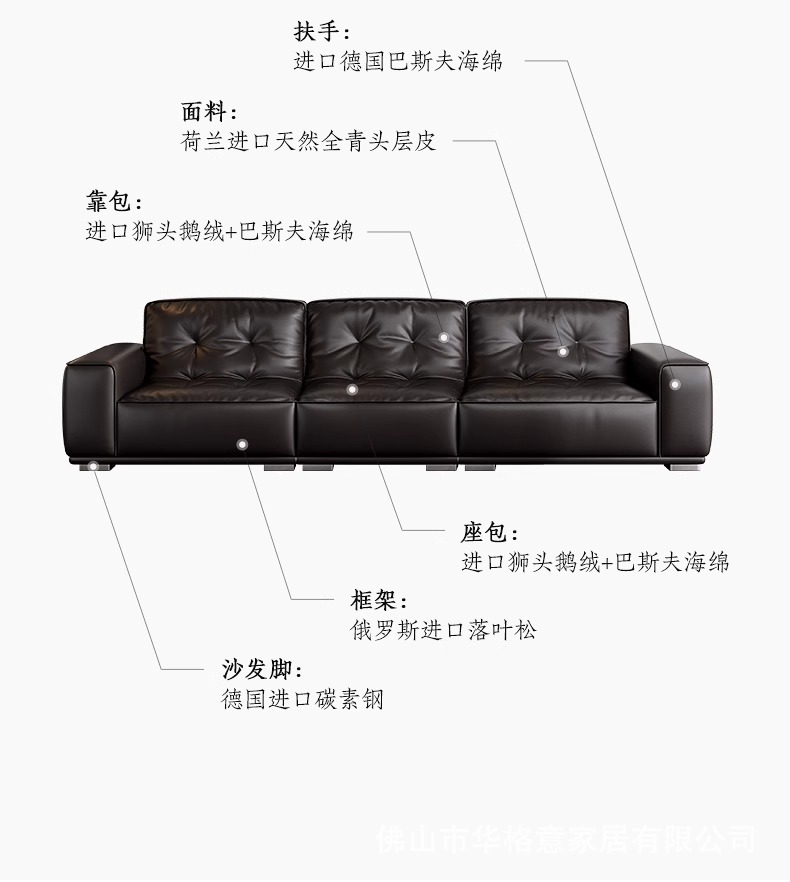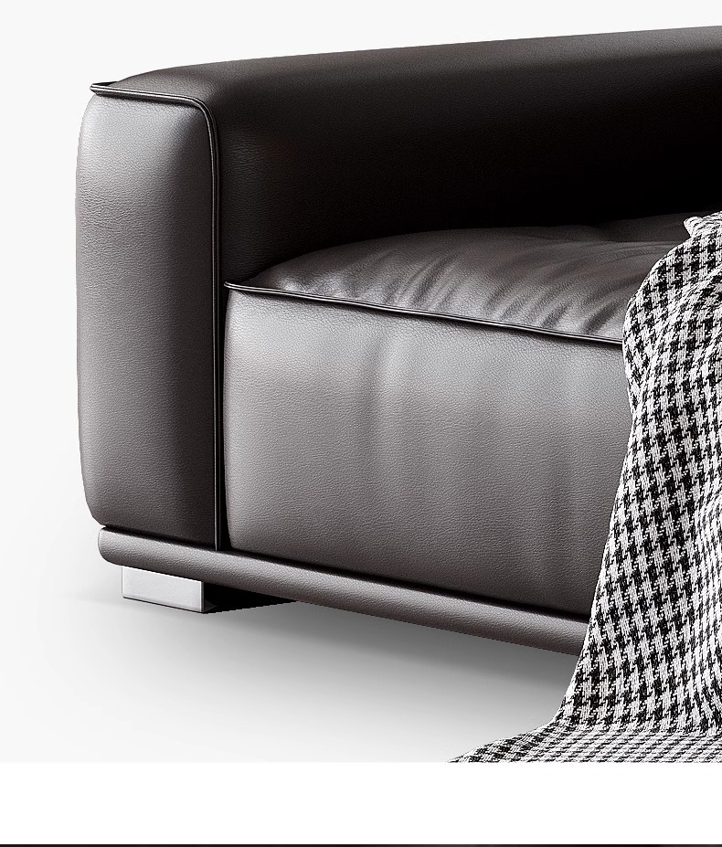 Диван для гостиной из массива дерева и кожи, современный минималистичный стиль, Foshan, на 3-4 человека, прямой ряд, первая слой коровьей кожи, черный ромбовидный диван