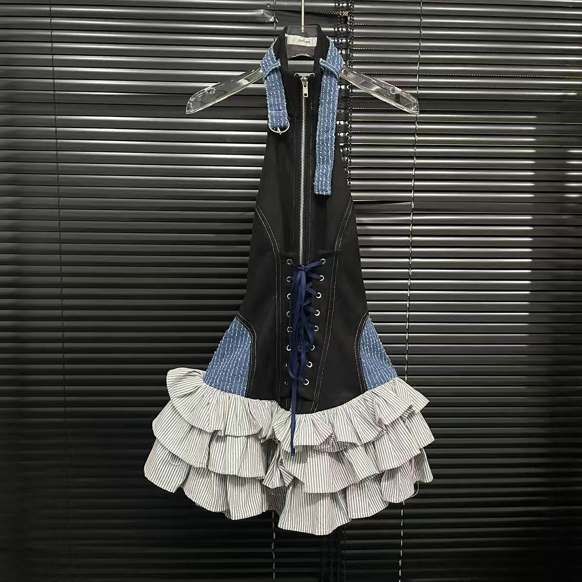 Новое американское нишевое платье в стиле ретро для девушек, короткое, с открытой спиной, на бретелях-халтер, с шипами, весна/лето 2025 года.