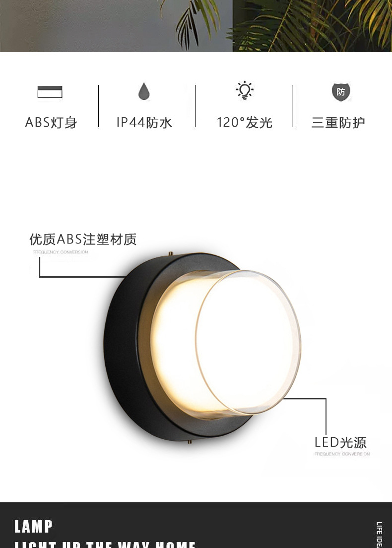 Настенный светильник из АБС-пластика, водонепроницаемый, светодиодный, для балкона, уличный, для лестниц, коридоров, двора, входа, светопроницаемый, водонепроницаемый, энергосберегающий