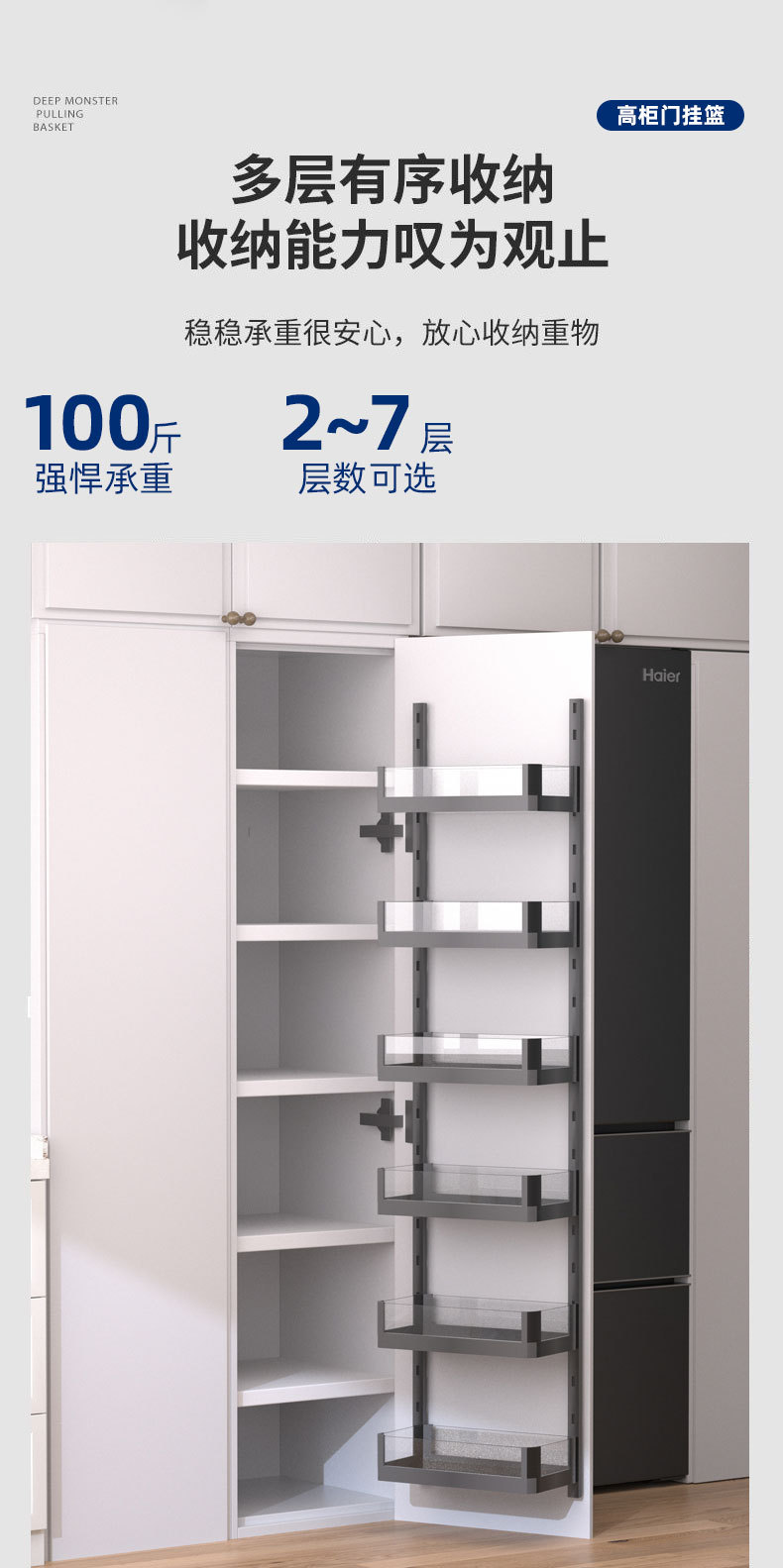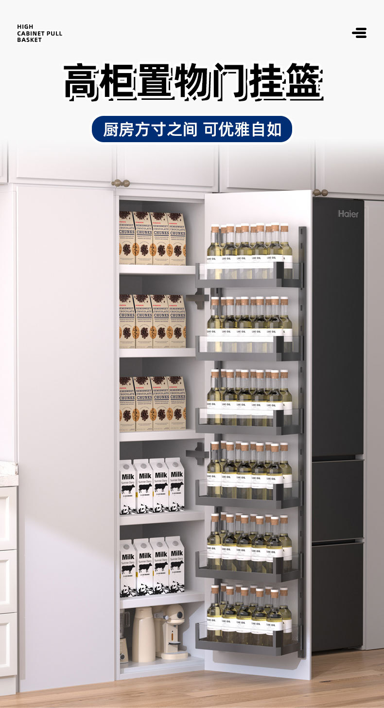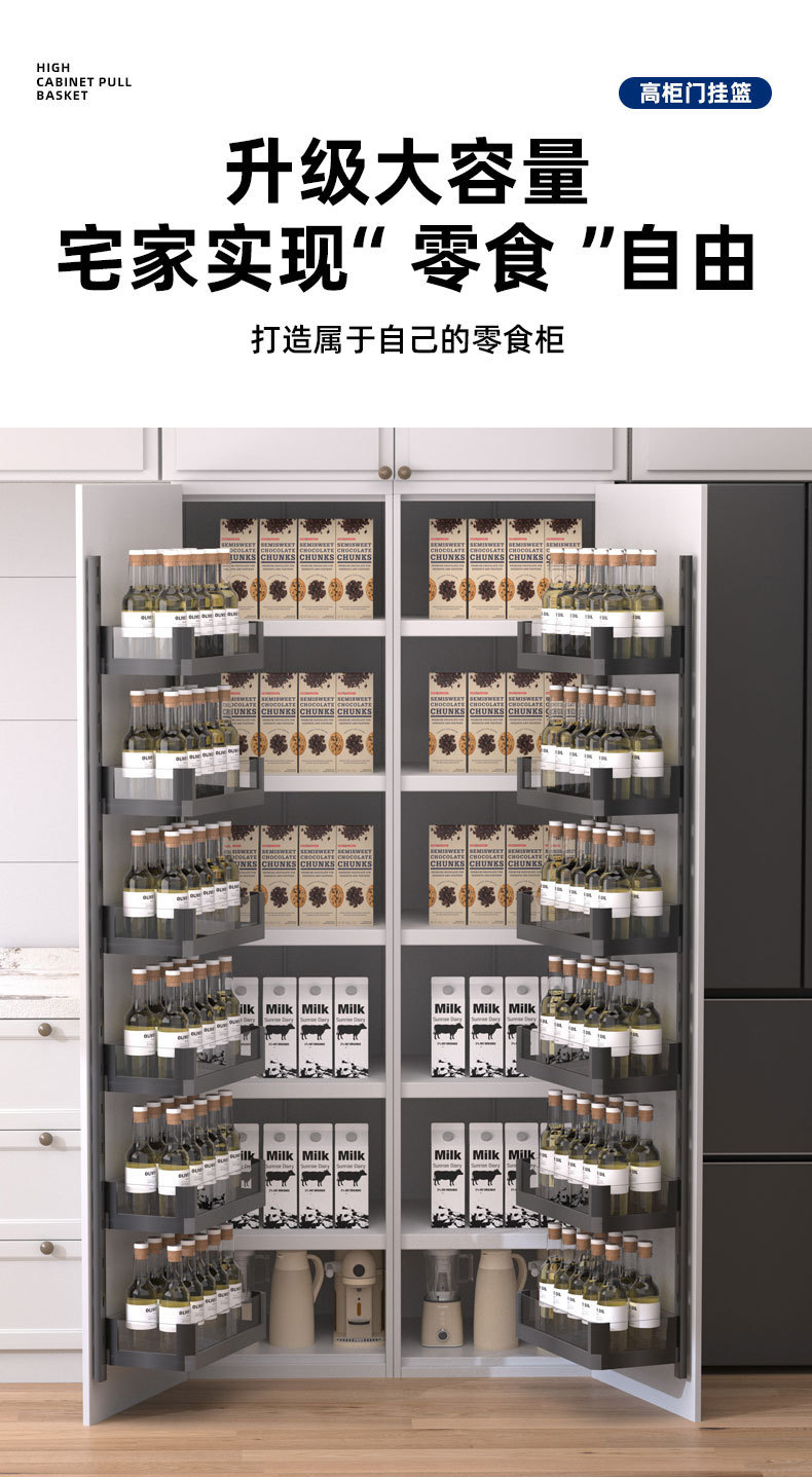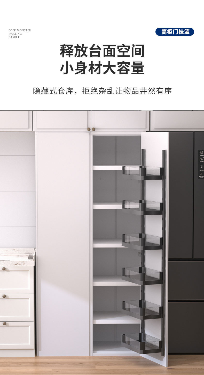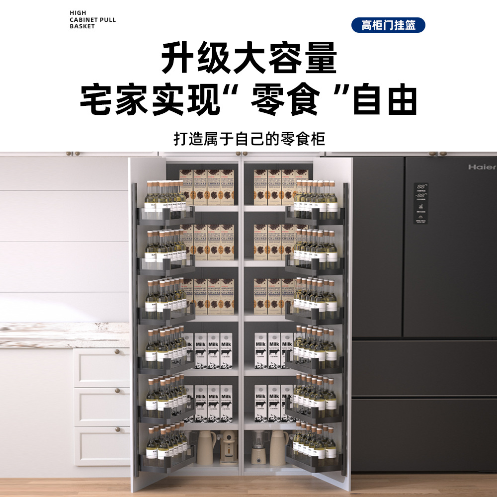 Подвесная корзина для кухонной двери, большая корзина для закусок Monster, высокий шкаф, выдвижная корзина, дверь шкафа, многослойная настенная полка для хранения, подвесная дверная конструкция с дверью.