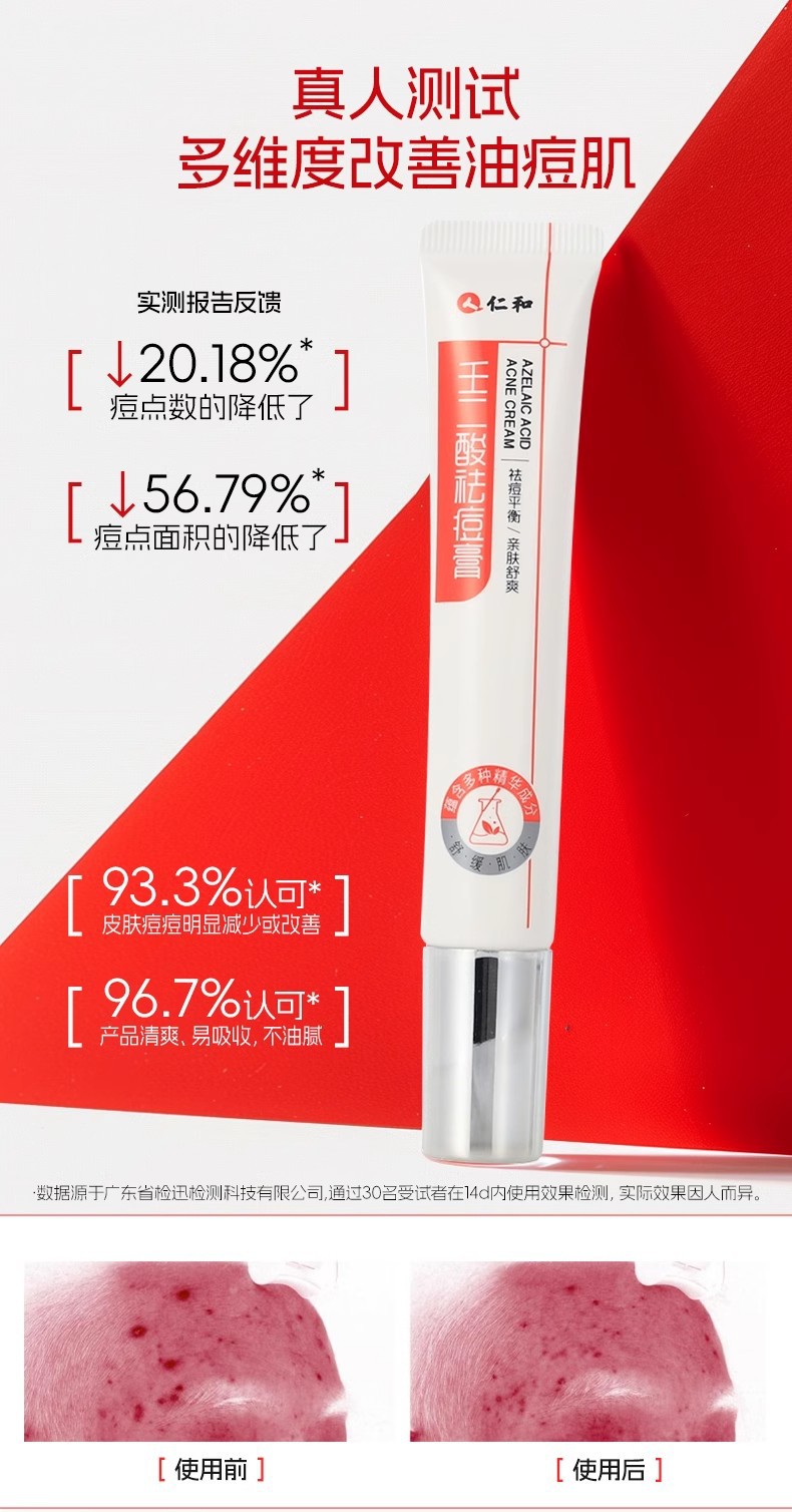 Renhe Крем против прыщей с азелаиновой кислотой Маска против прыщей Абсорбция кожи, благоприятная для прыщей Освежающее нежирное балансирующее масло