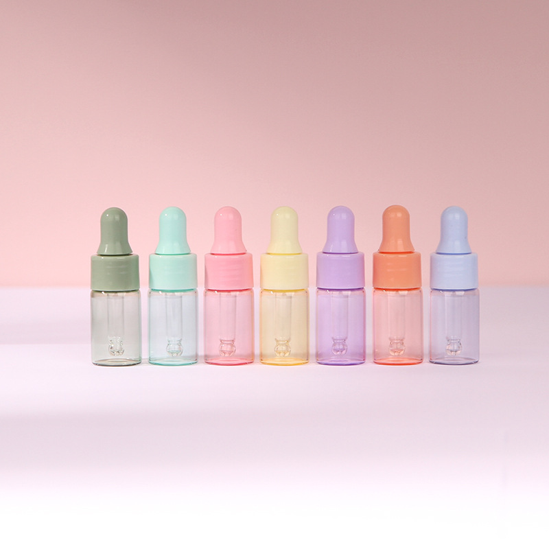 Флаконы для эфирных масел в наличии для трансграничной торговли, 1 мл, 2 мл, 3 мл, 5 мл, цветные флаконы-капельницы, флаконы для дозирования жидкостей, стеклянные флаконы для образцов