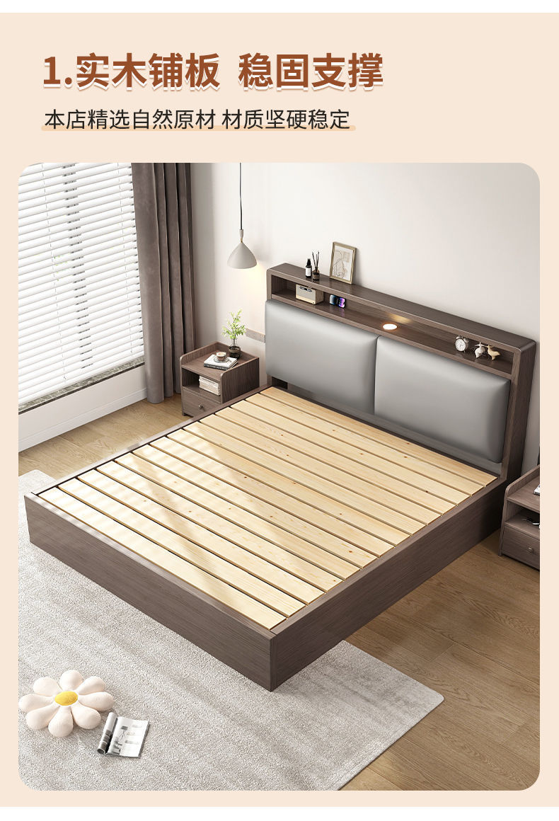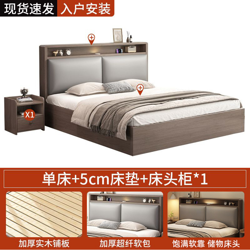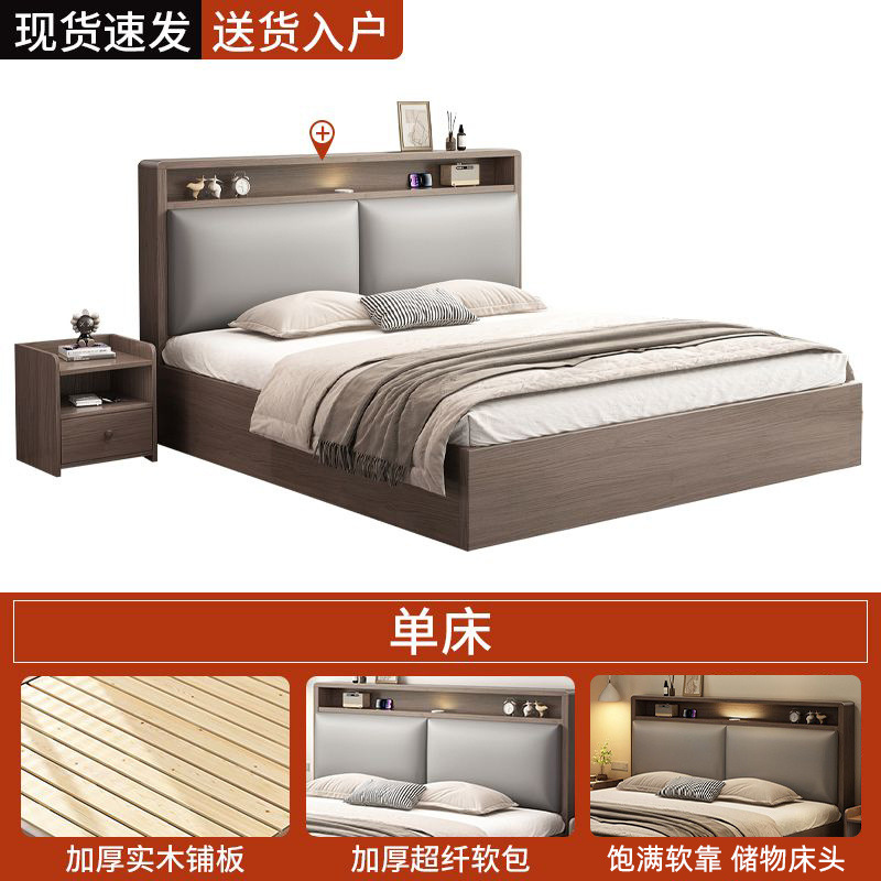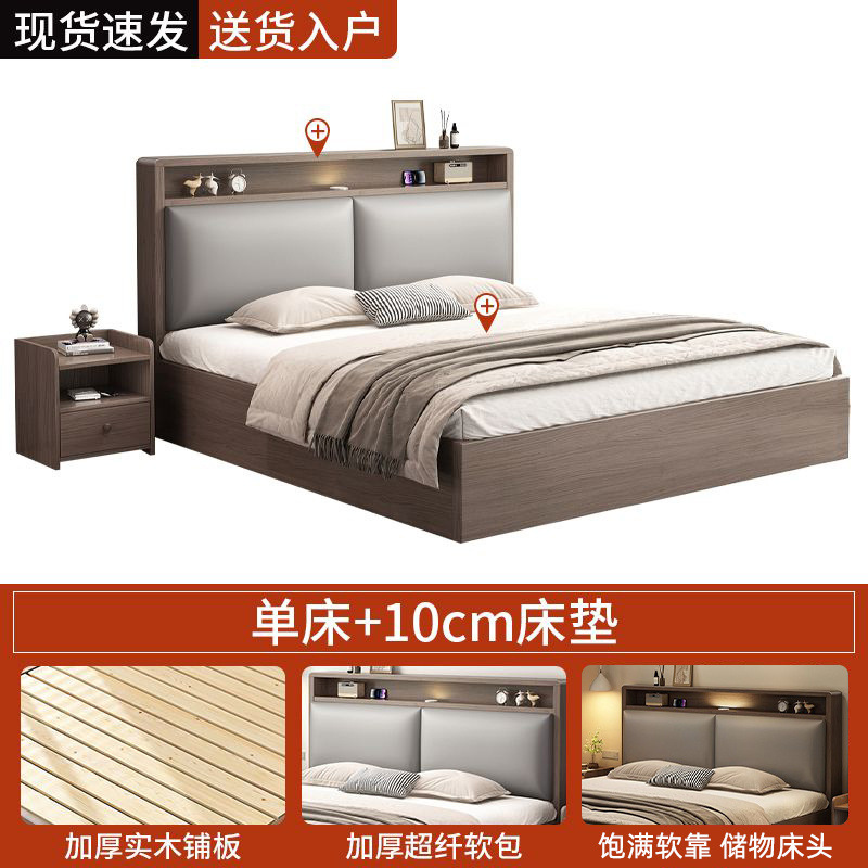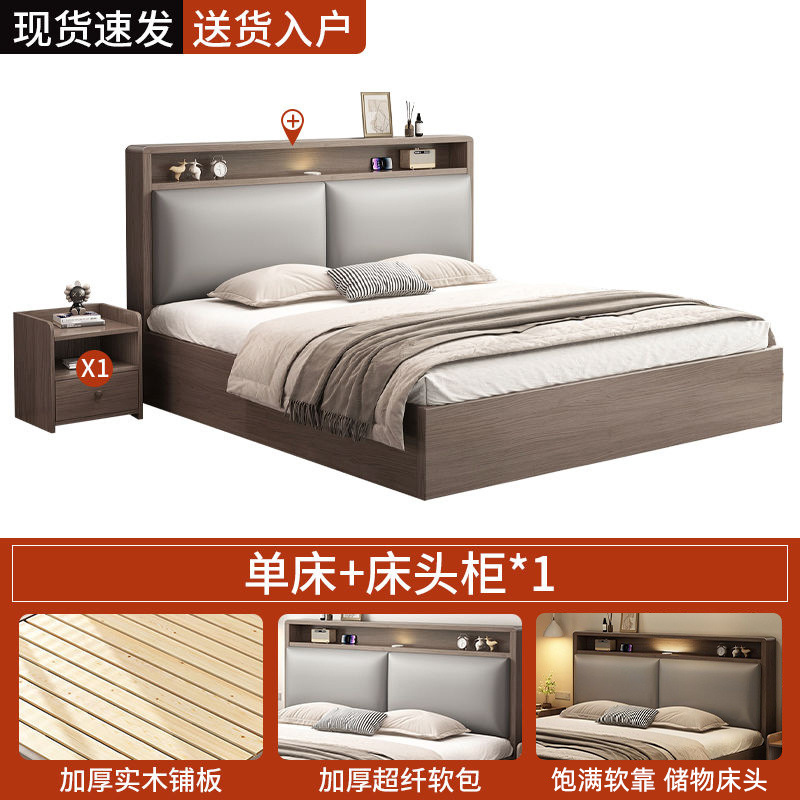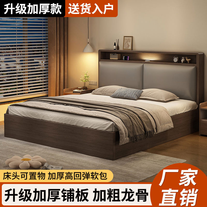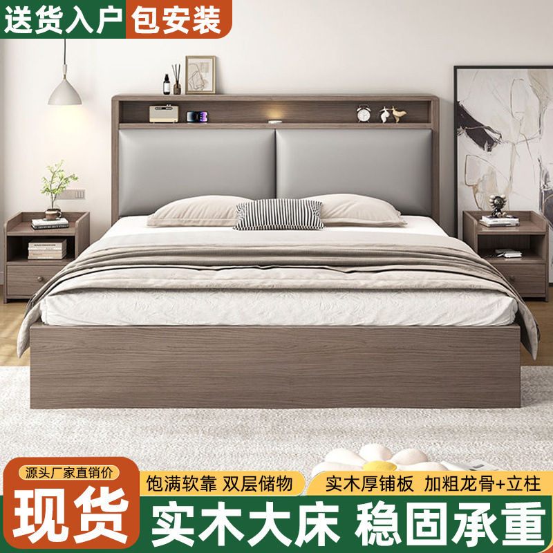 Кровать из массива дерева 1,5 м для спальни, двуспальная кровать 1,8 м для малогабаритной квартиры, односпальная кровать 1,2 м для арендного дома, простая кровать для взрослых с доставкой.