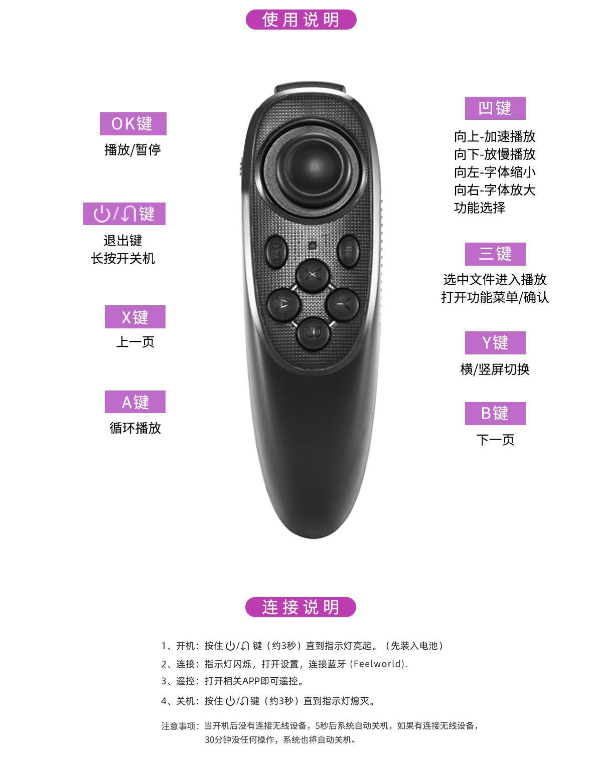 提词器配备蓝牙遥控器可在约10米内调控提词设备,控制APP中的内容播放与暂停、调节播放速度、字体大小等设置, 操作简单。
