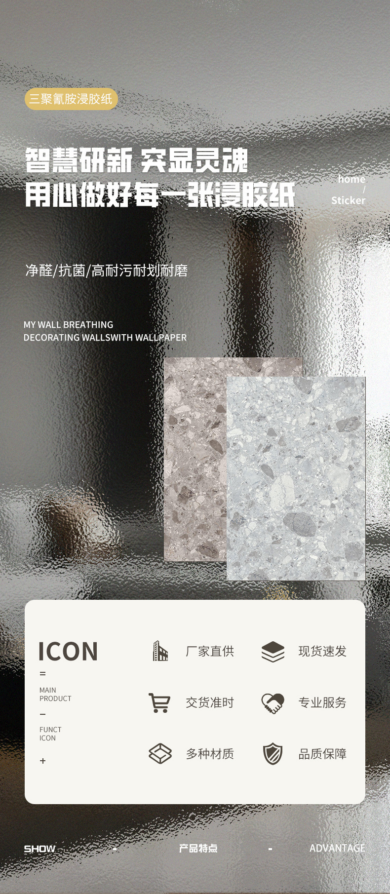Меламиновая пропитанная бумага, без альдегидов, доступная роскошь, новая декоративная бумага для мебели с рисунком терраццо, фоновые обои, антибактериальные и устойчивые к плесени.