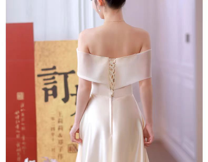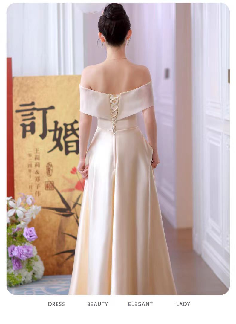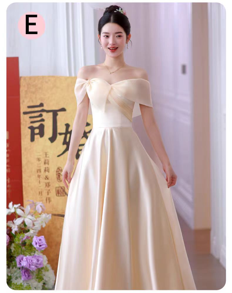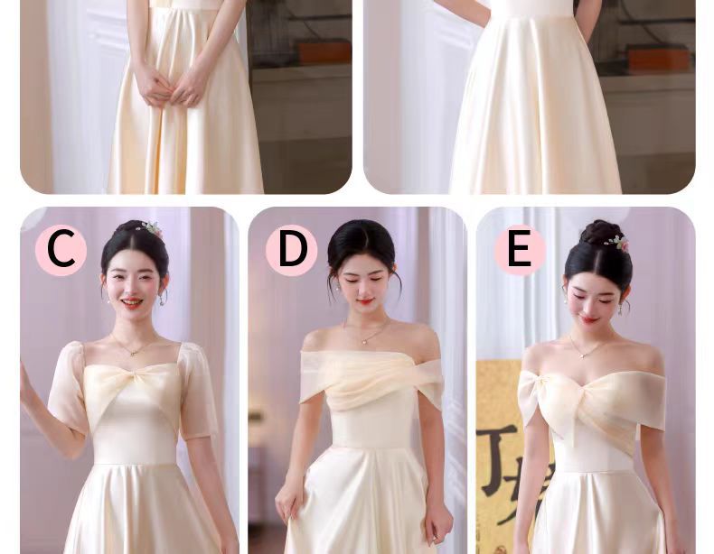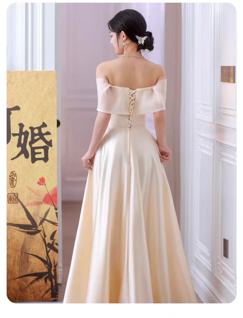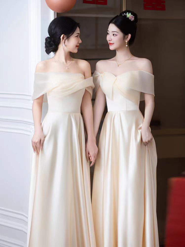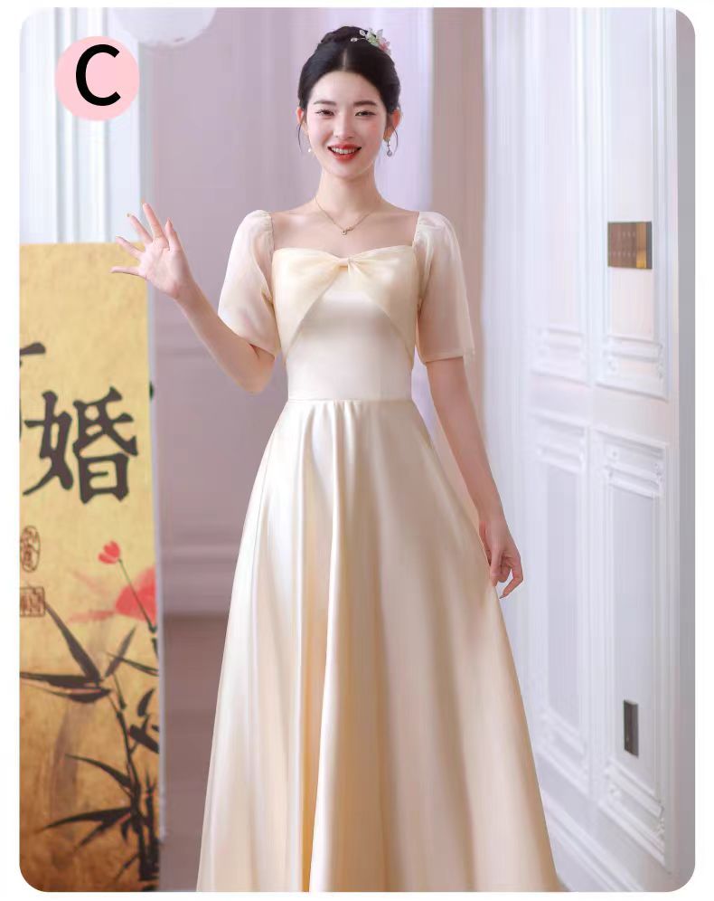 Шампань атласное платье для подружек невесты 2025 новое платье для ведущей, вечернее платье для сестер, группового дня рождения, можно носить на обычные мероприятия