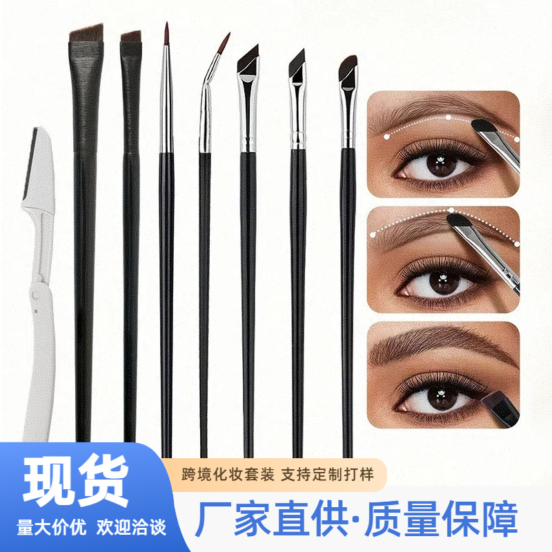 Набор кистей для макияжа из 8 предметов, трансграничная подводка для глаз Amazon с угловым лезвием, набор кистей для теней для век, готовый к продаже