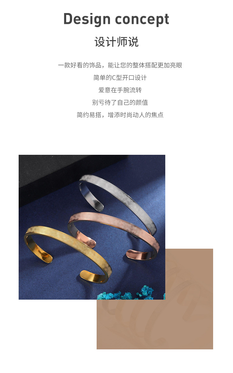 Браслет Huayue из титановой стали, популярный на международном рынке, в форме буквы С, в ретро-стиле, универсальный, не тускнеющий, из нержавеющей стали.