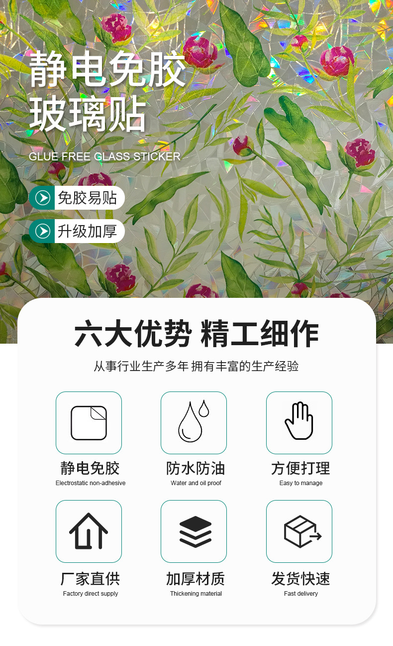 Зеленая роза виноградная лоза красочный солнечный свет статическая наклейка двухсторонняя визуальная витрина стекла декоративная светопропускная наклейка