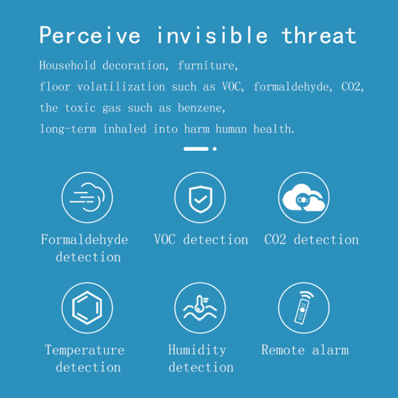 智能风箱的检测范围:甲醛、VOC气体、CO2、温度、湿度