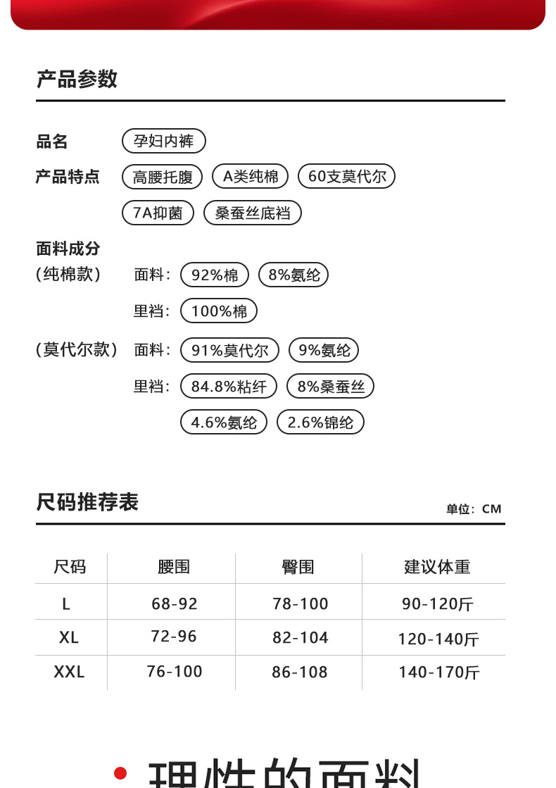 Нижнее белье для беременных Modal Красный хлопок с высокой талией