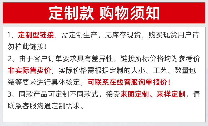 可提供激光镭射印制LOGO图案服务(费用另算,请联系客服),定制产品不接受退换货。