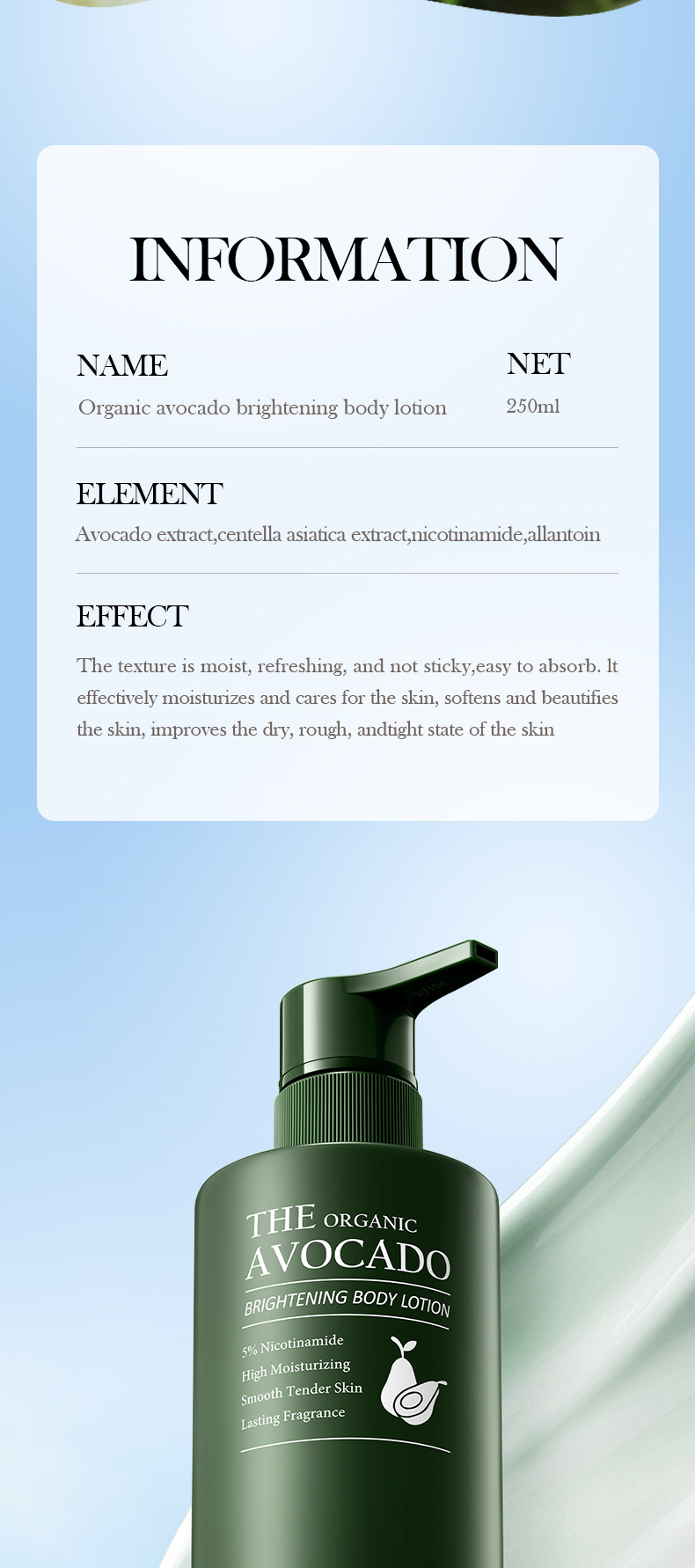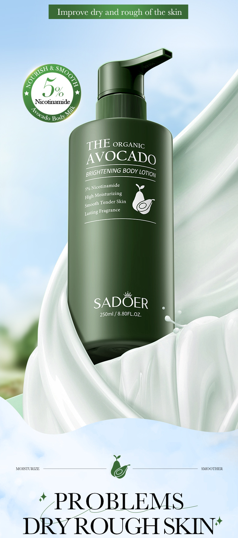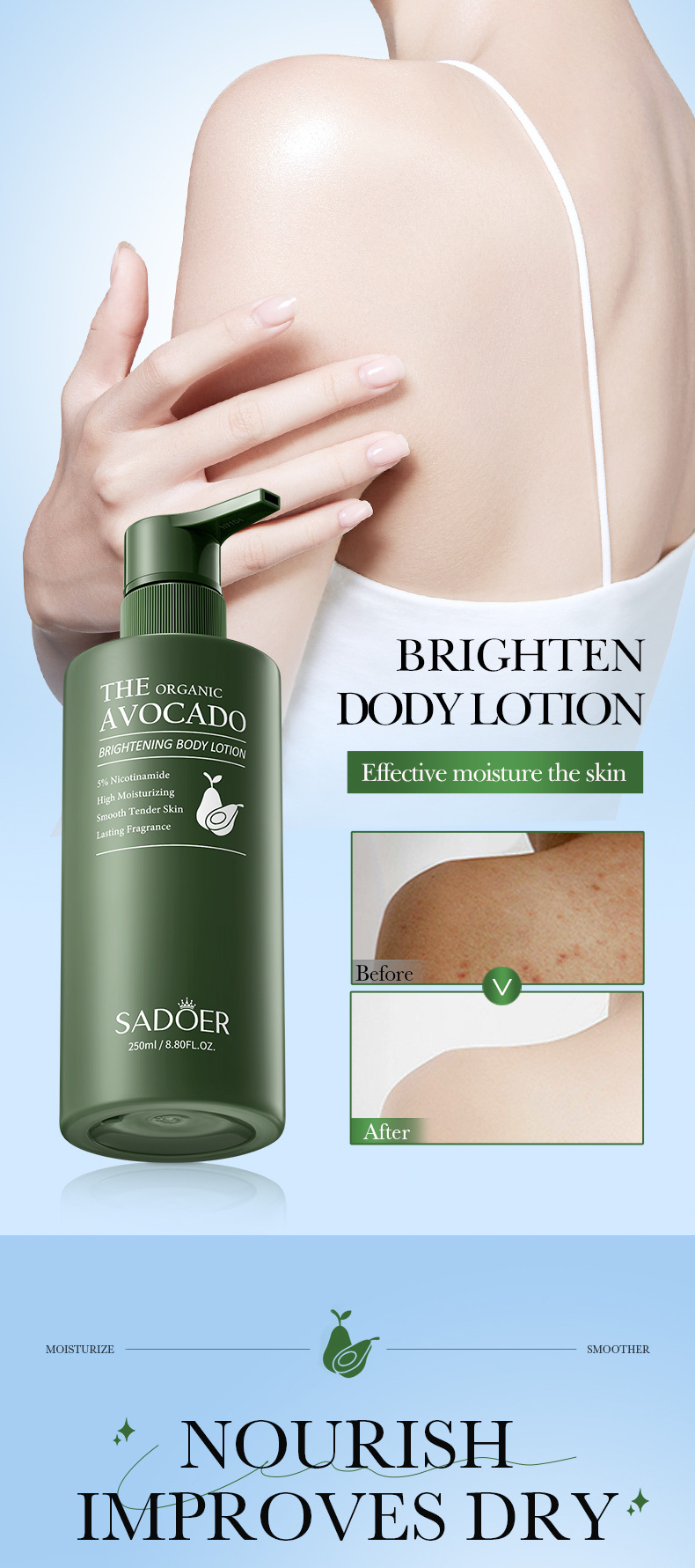 Крем для тела SADOER с авокадо и ниацинамидом, осветляющее молочко для тела, осенне-зимний кросс-бордер