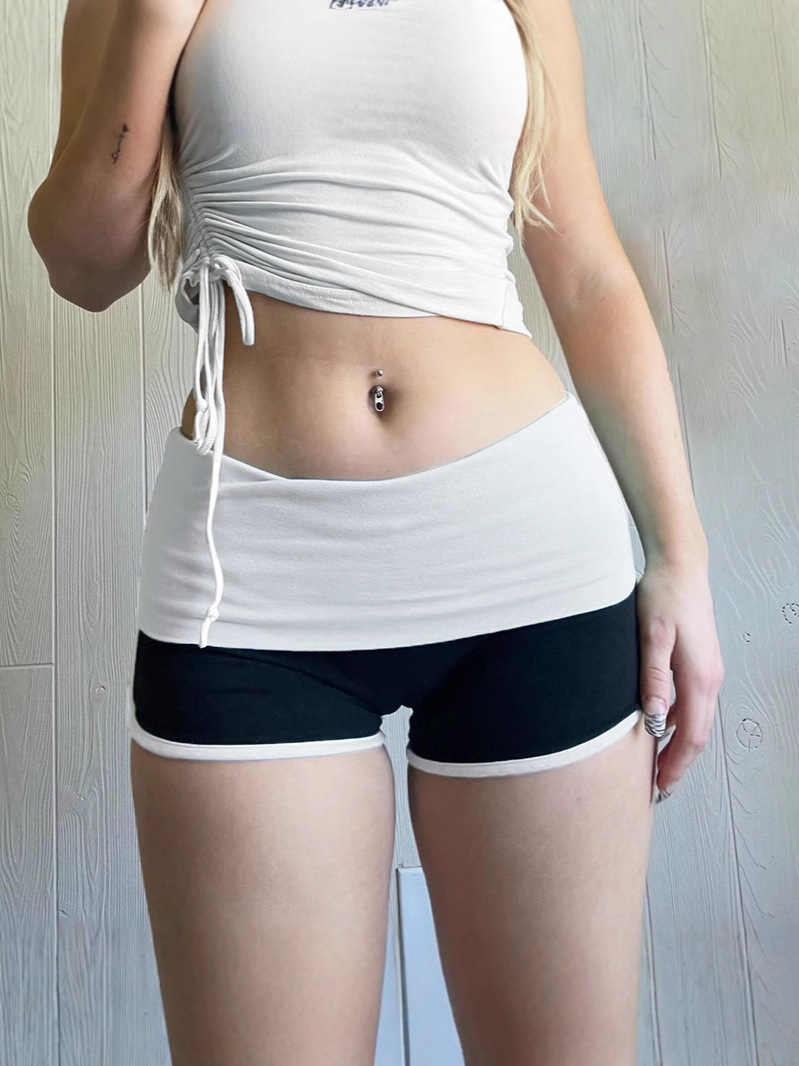 Американский стиль 2025, уличный спортивный стиль, контрастные цвета, сексуальные шорты с низкой талией, закрывающие бедра, узкие базовые повседневные брюки