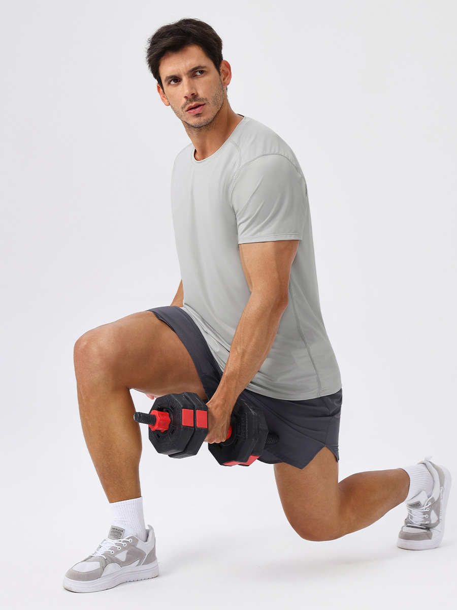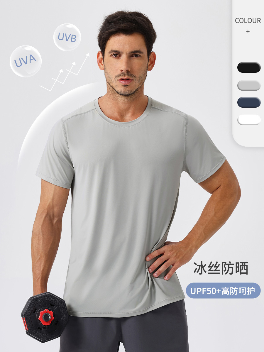 Мужская весна и лето ледяной шелк солнцезащитный крем Спортивная футболка быстродушный фитнес с короткими рукавами на открытом воздухе свободный дышащий круглый вырез бег топ