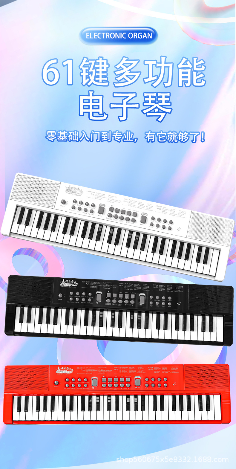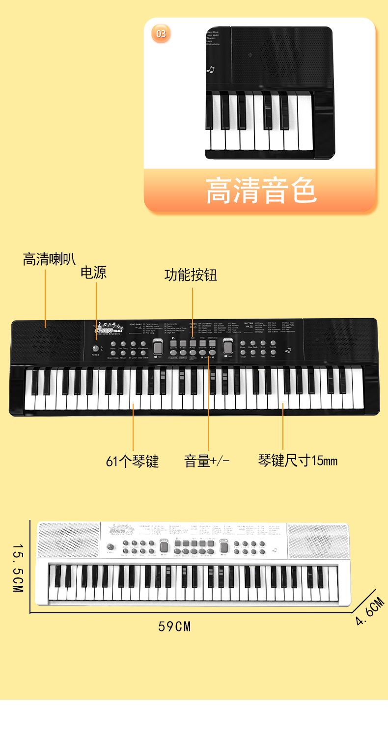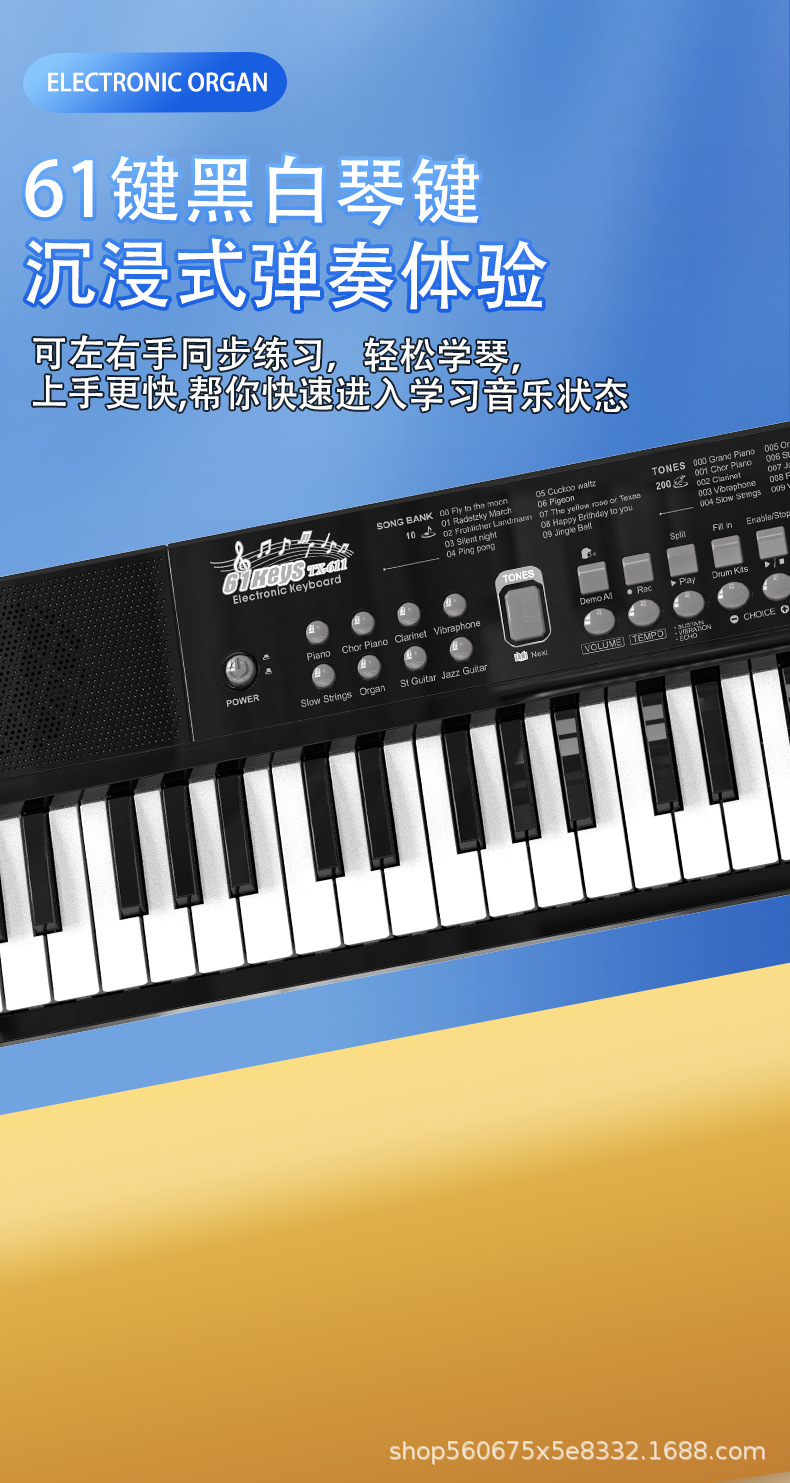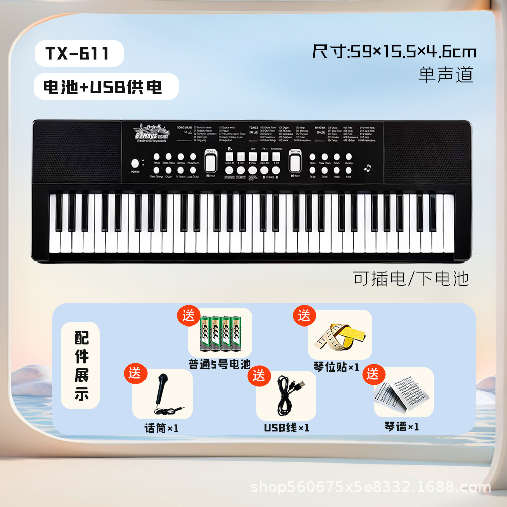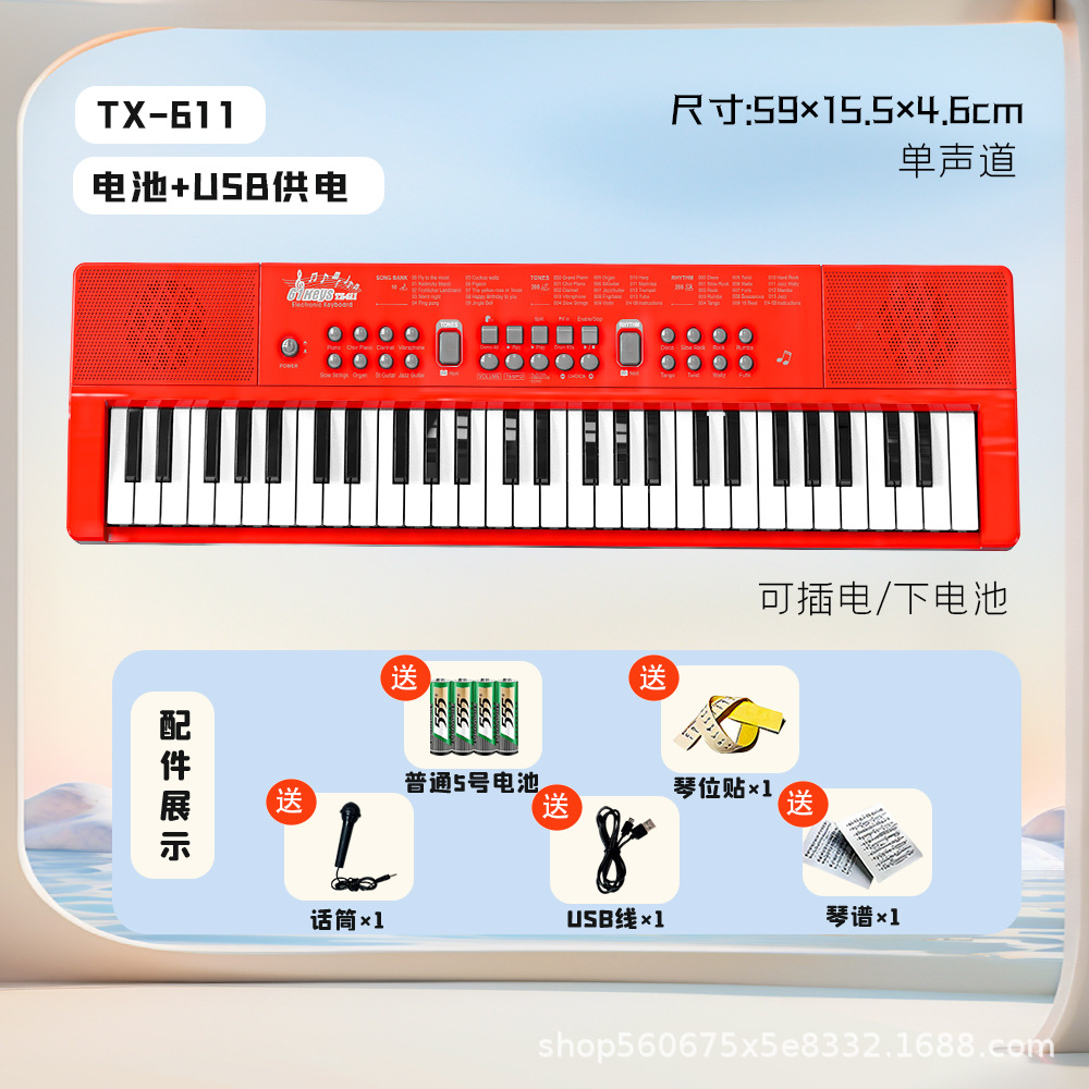 Детская базовая электронная клавиатура с 61 клавишей (черная), аккумуляторная версия; Детская базовая электронная клавиатура с 61 клавишей (белая), аккумуляторная версия; Детская базовая электронная клавиатура с 61 клавишей (красная), аккумуляторная версия; Детская электронная клавиатура начального уровня с 61 клавишей (черная), версия с батарейкой; Детская электронная клавиатура начального уровня с 61 клавишей (белая), версия с батарейкой; Увеличенная версия многофункциональной цифровой клавиатуры с 61 клавишей.; 37-клавишная черная (музыка + самопроигрывание) электронная клавиатура; 37-клавишная розовая (музыка + самопроигрывание) электронная клавиатура; Электронная клавиатура белого цвета с 37 клавишами (музыка + самопроигрывание); 37-клавишная оранжевая электронная клавиатура (музыка + самопроигрывание)