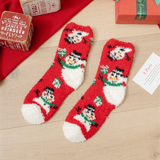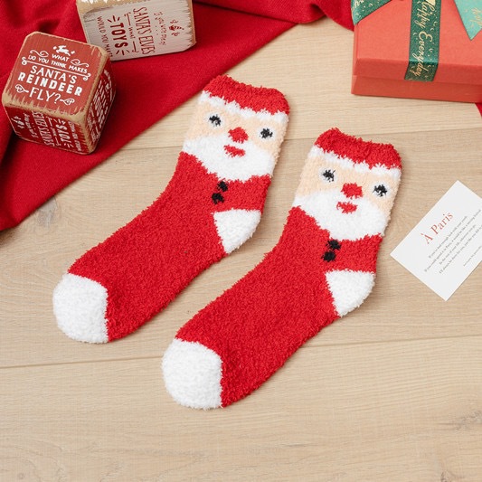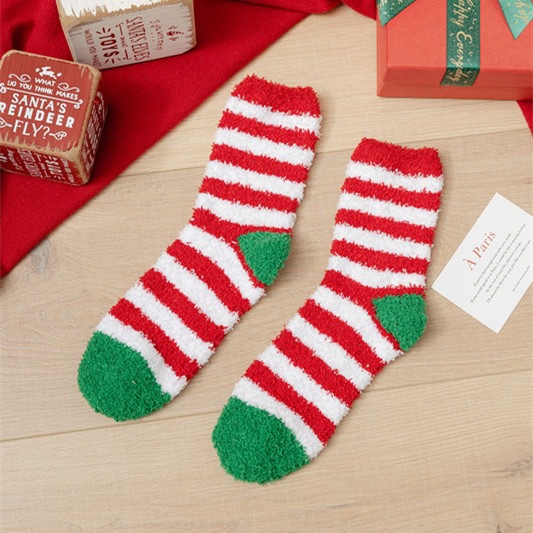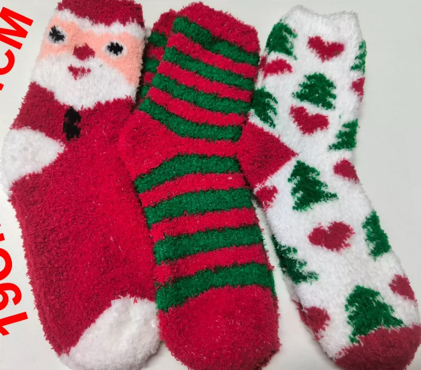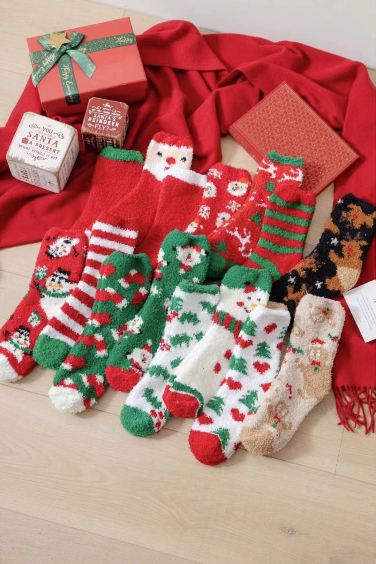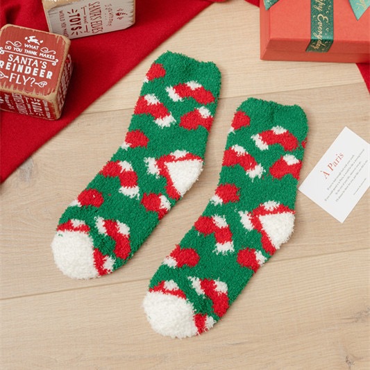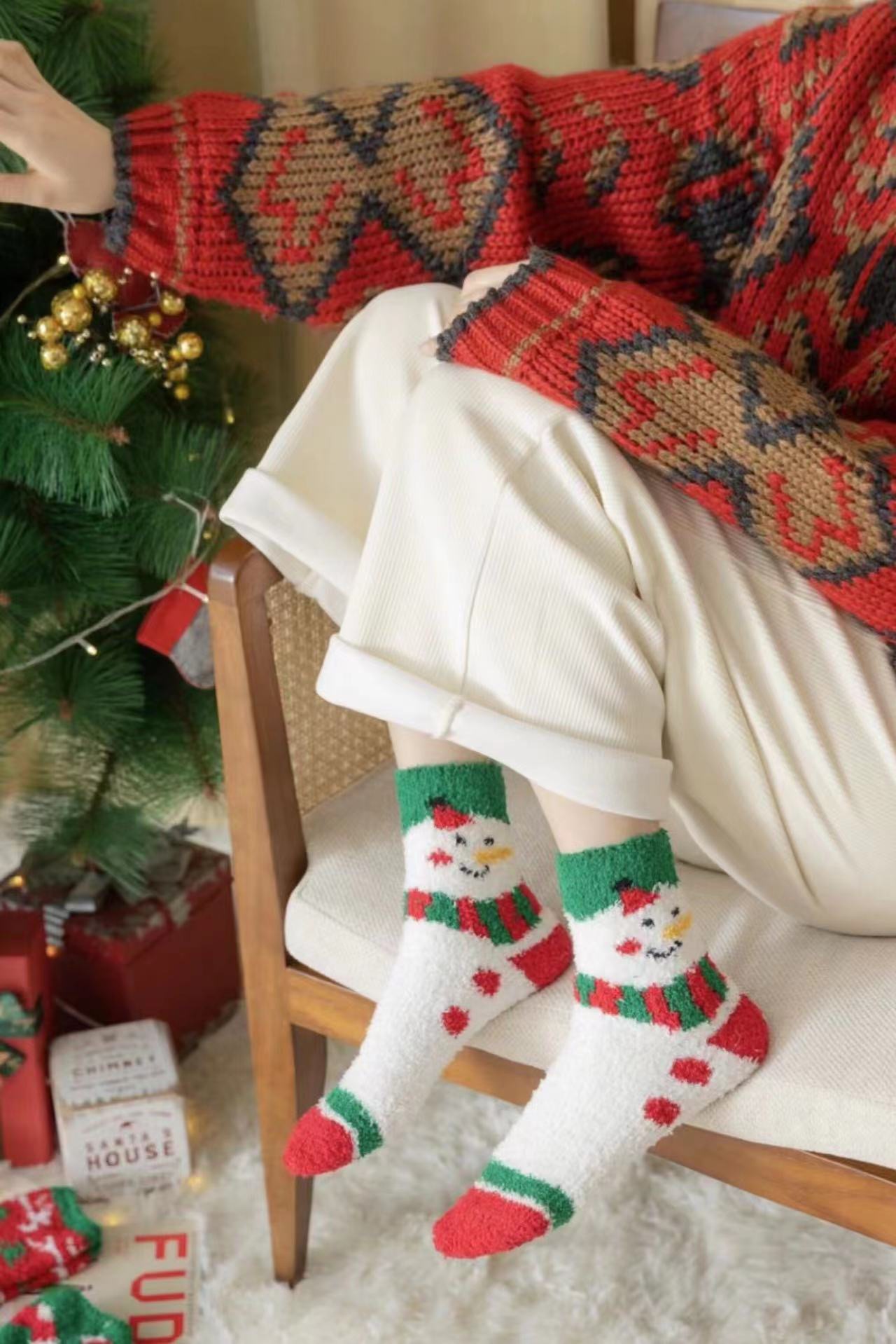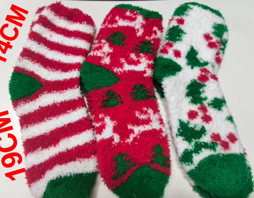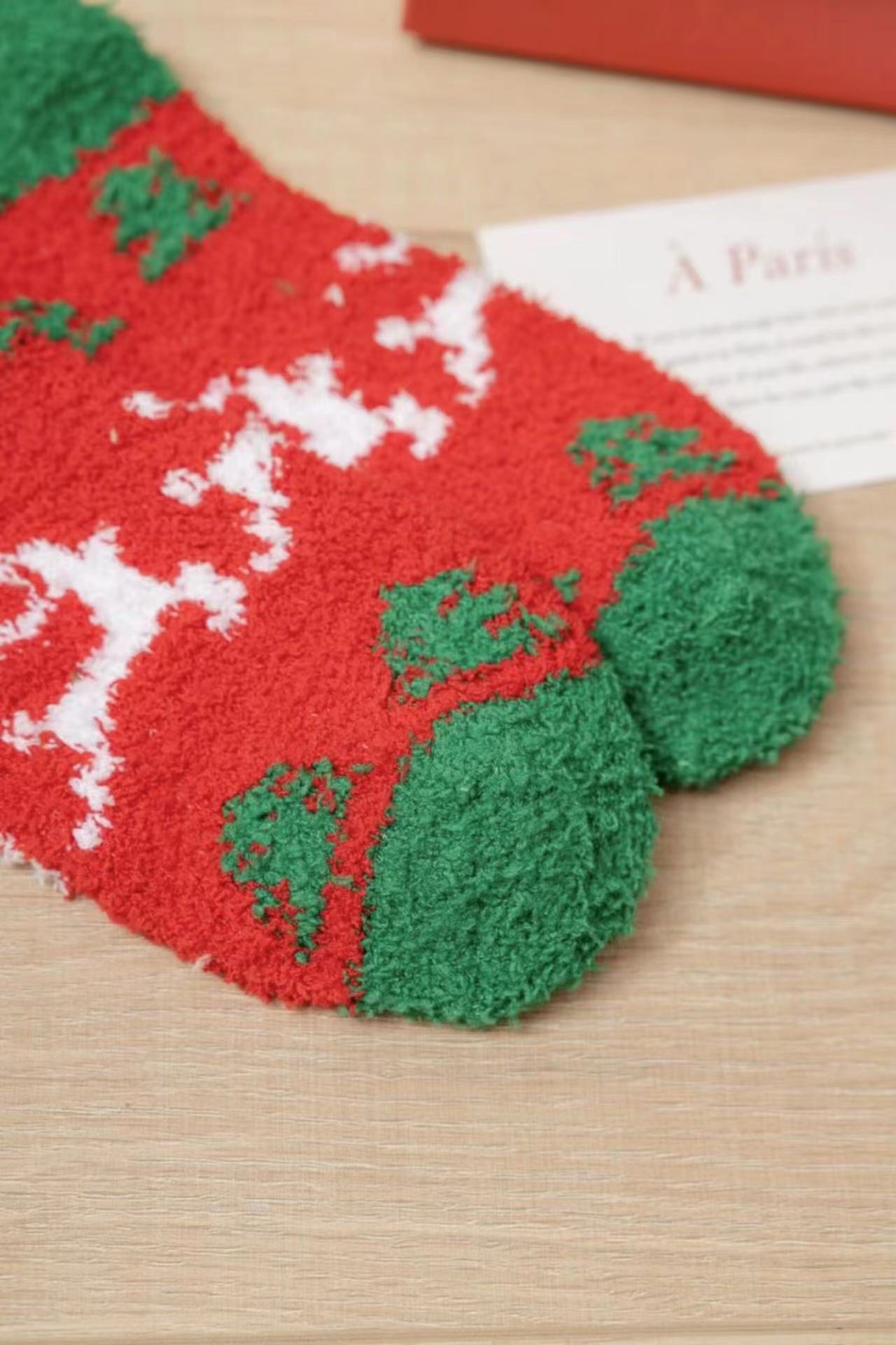 Осенне-зимние коралловые бархатные носки в рождественском стиле, утолщенные флисовые носки с рисунком лося, плюшевые теплые полубархатные женские носки