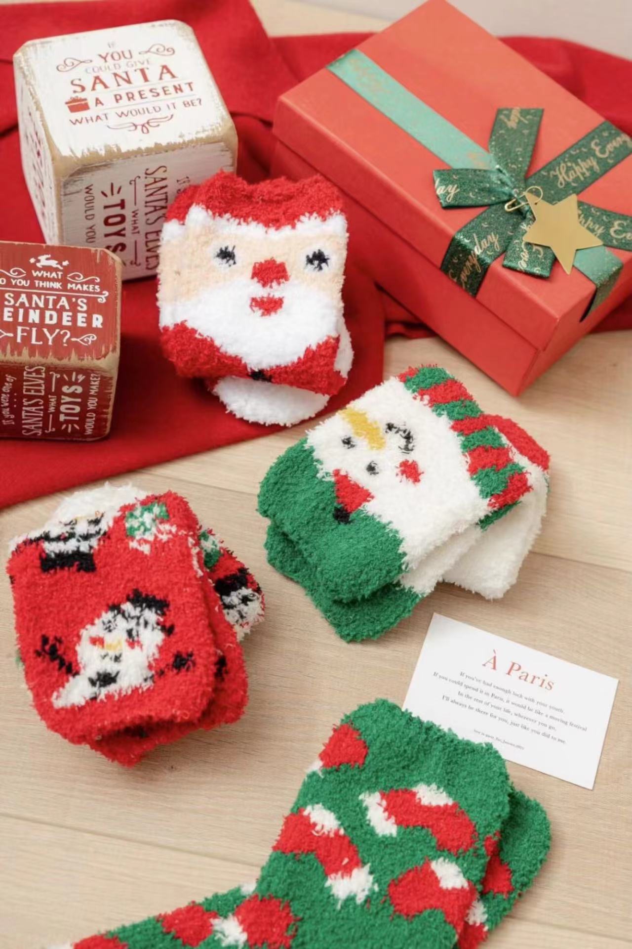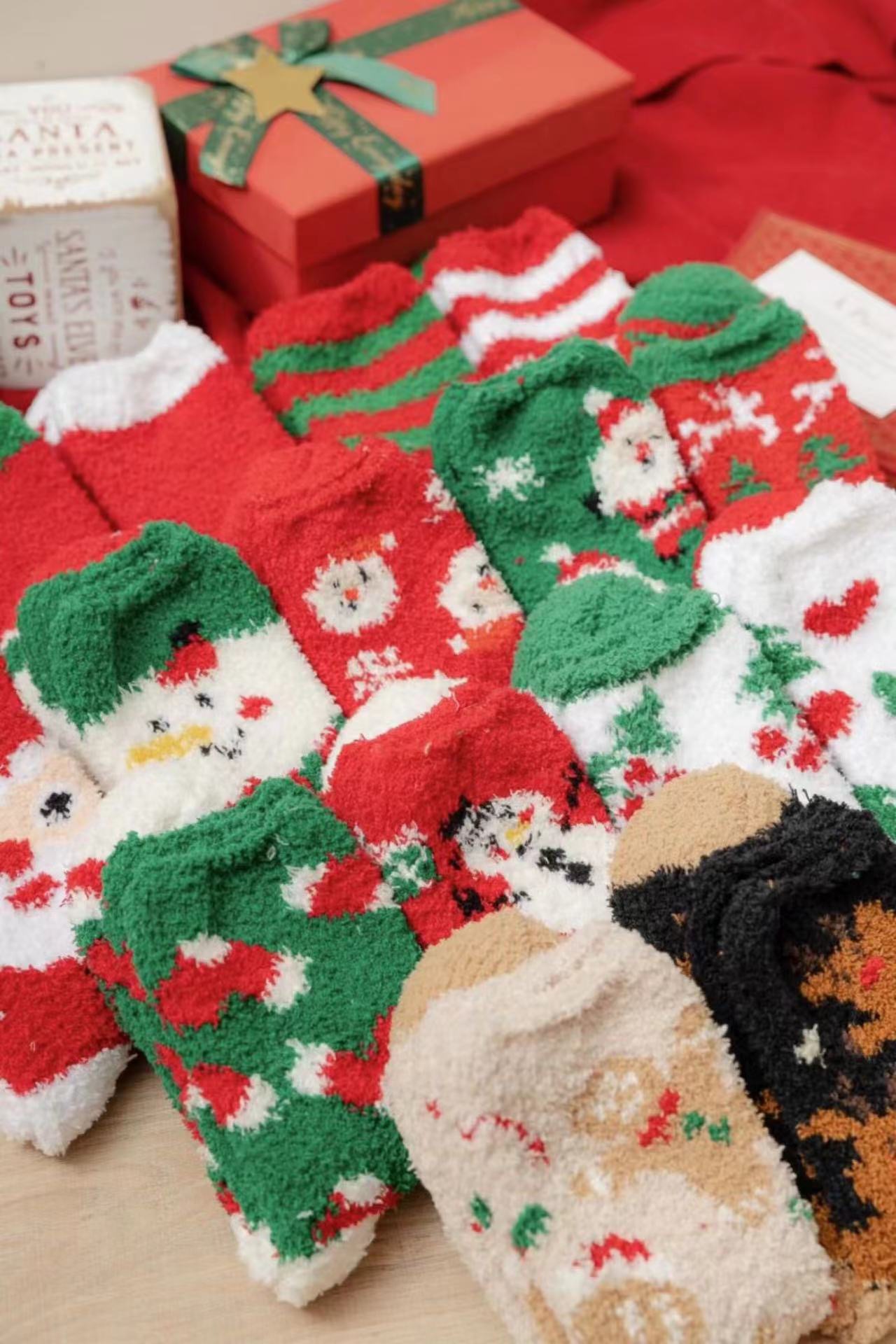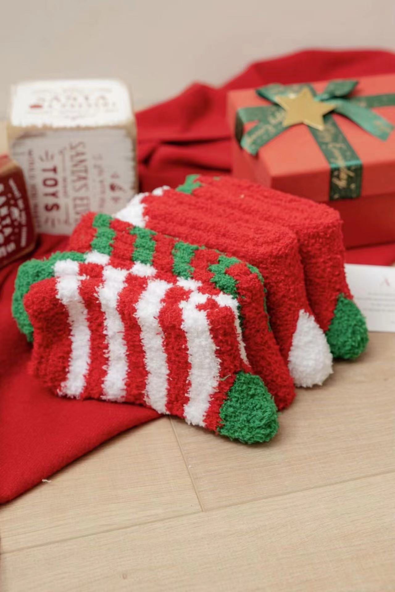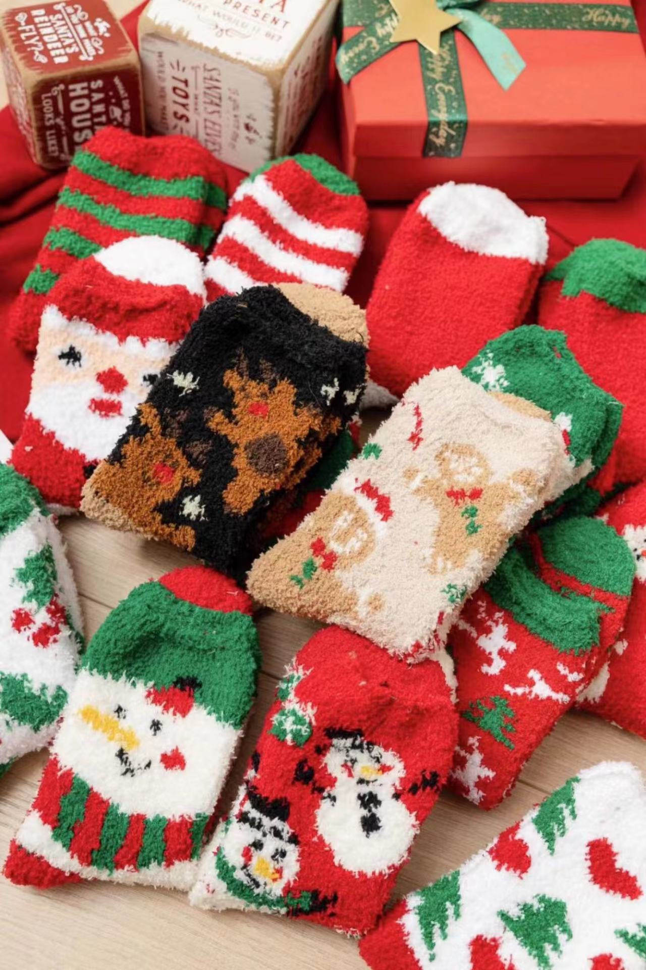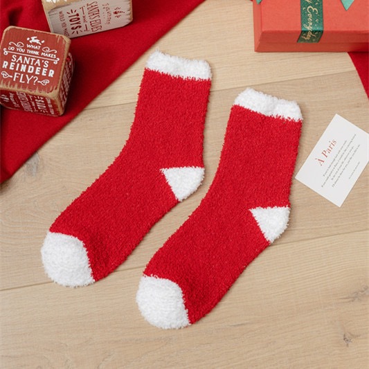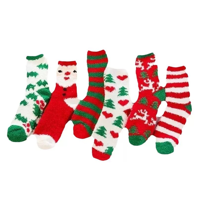 Осенне-зимние коралловые бархатные носки в рождественском стиле, утолщенные флисовые носки с рисунком лося, плюшевые теплые полубархатные женские носки