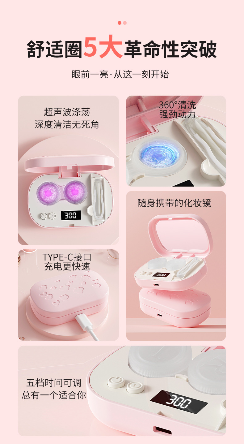 Портативный очиститель контактных линз с LCD-дисплеем, для очистки от синего света, электрический очиститель для контактных линз