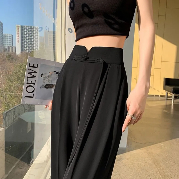 2024 новые женские повседневные брюки с драпировкой в китайском стиле и высокой талией, костюмные брюки на пуговицах для весны и лета, миниатюрные прямые брюки