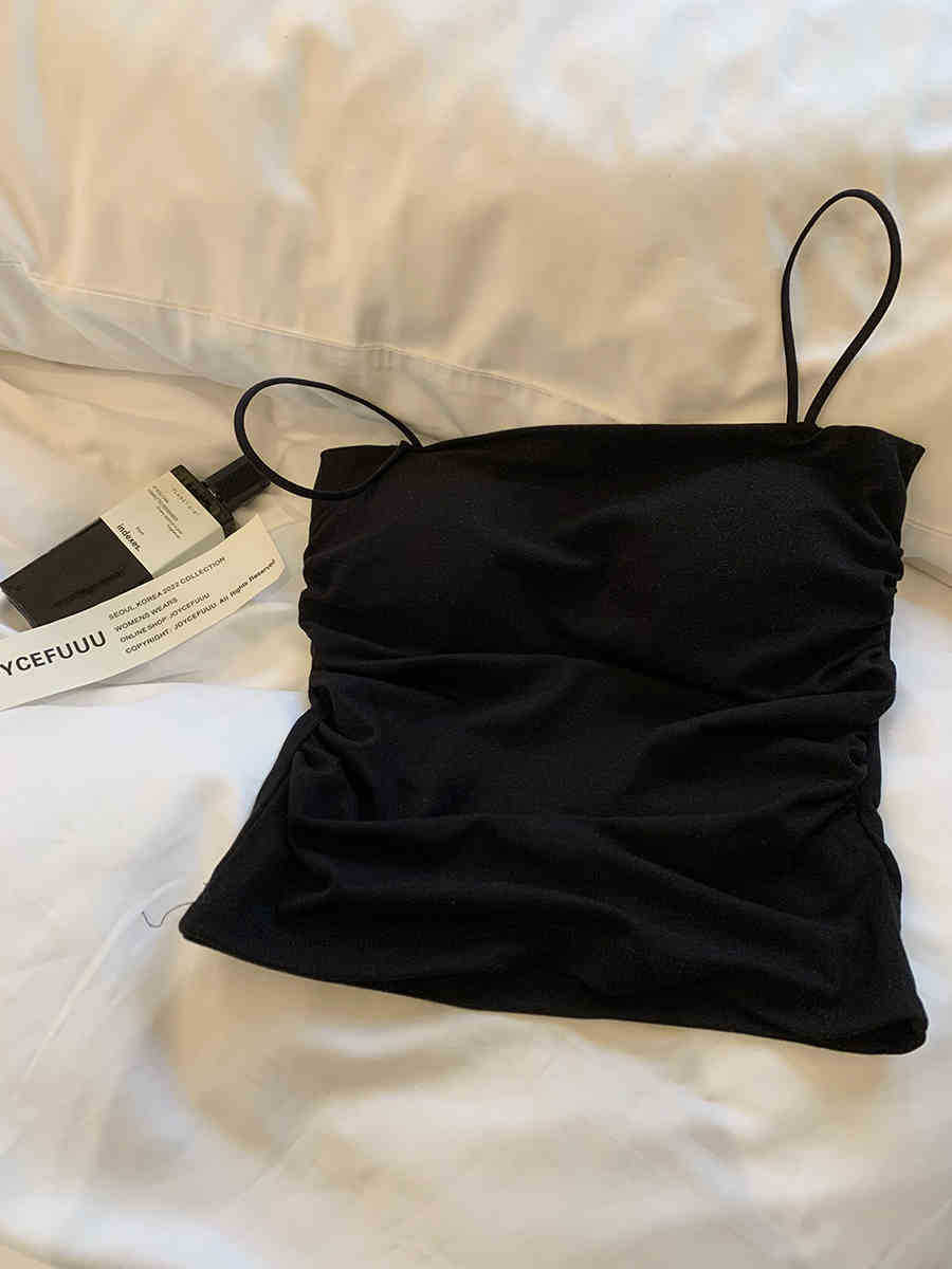 Утягивающий топ из чистого хлопка с открытыми плечами и рюшами Pure Desire с нагрудными подушечками для верхней одежды, базовый слой, топ-труба.