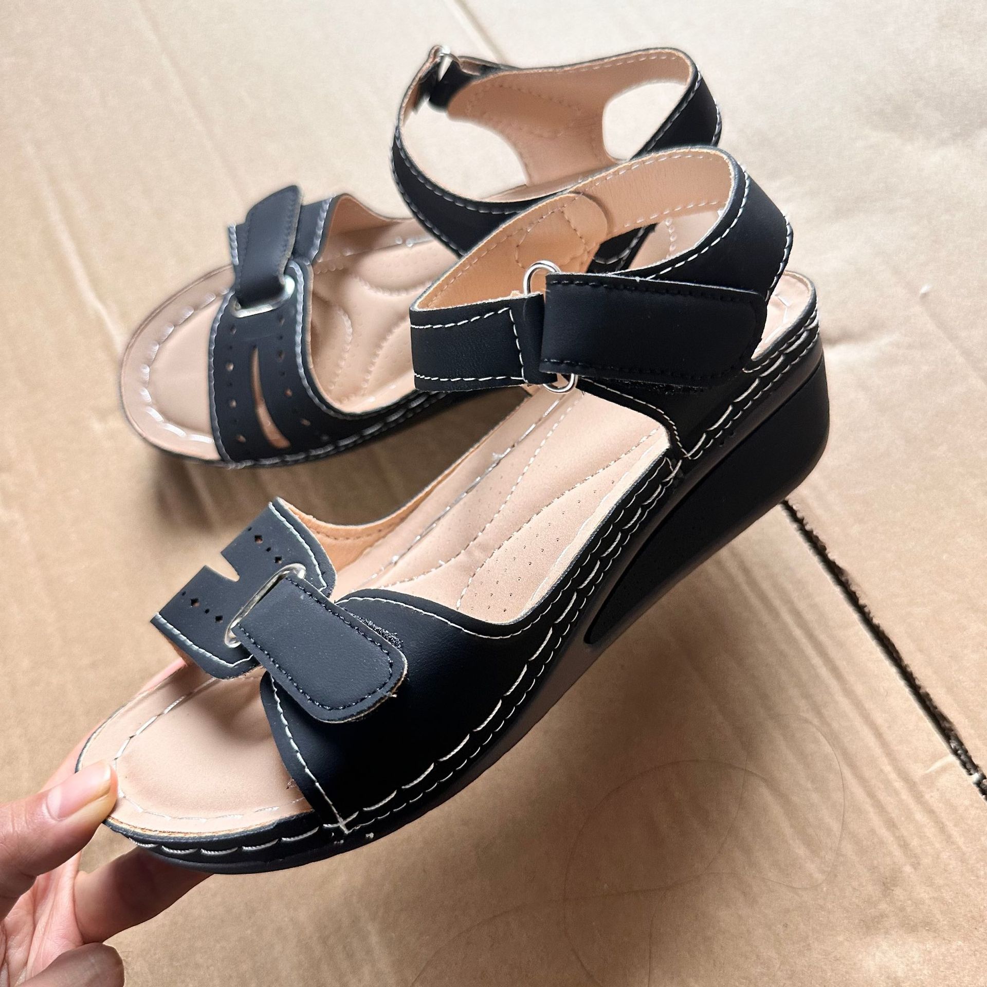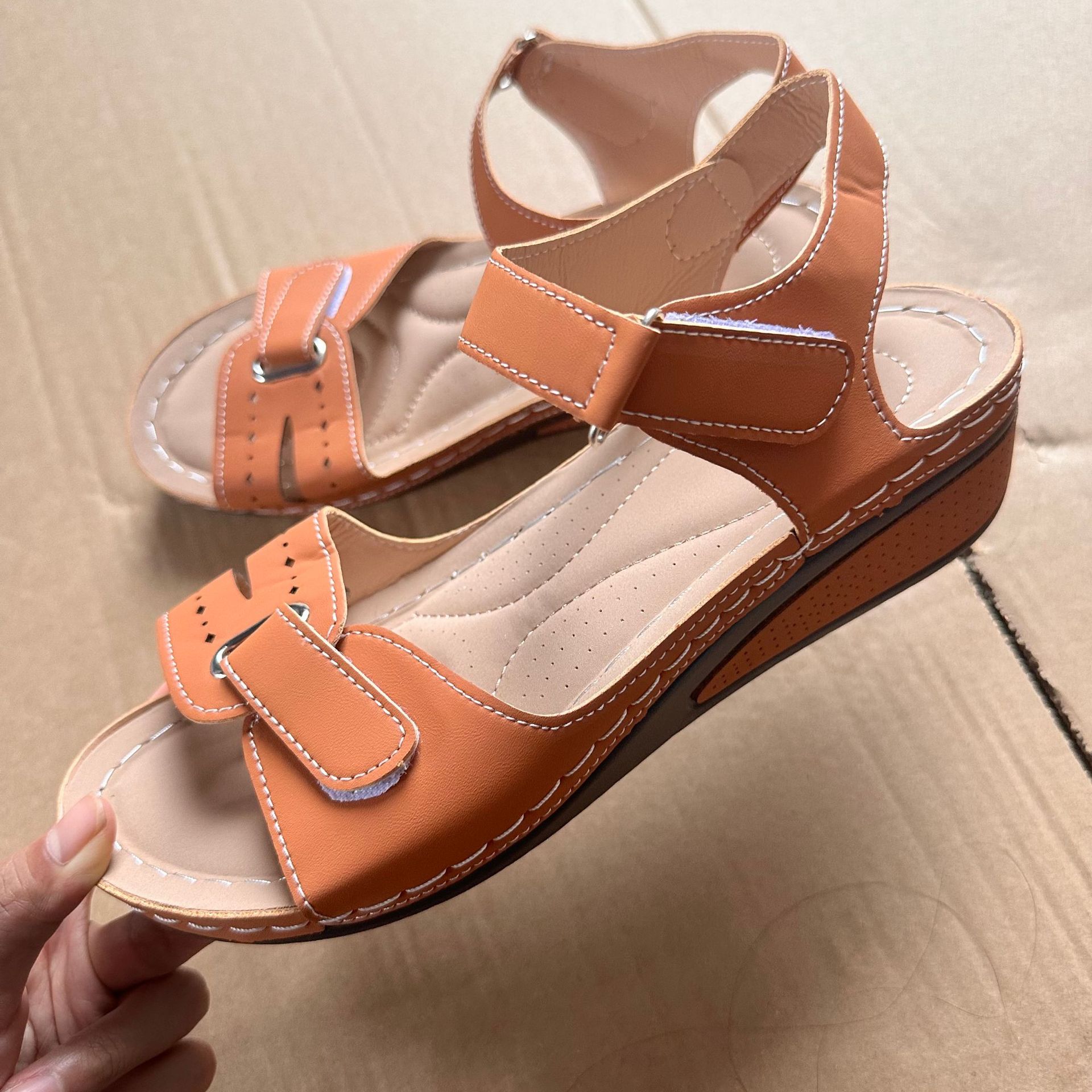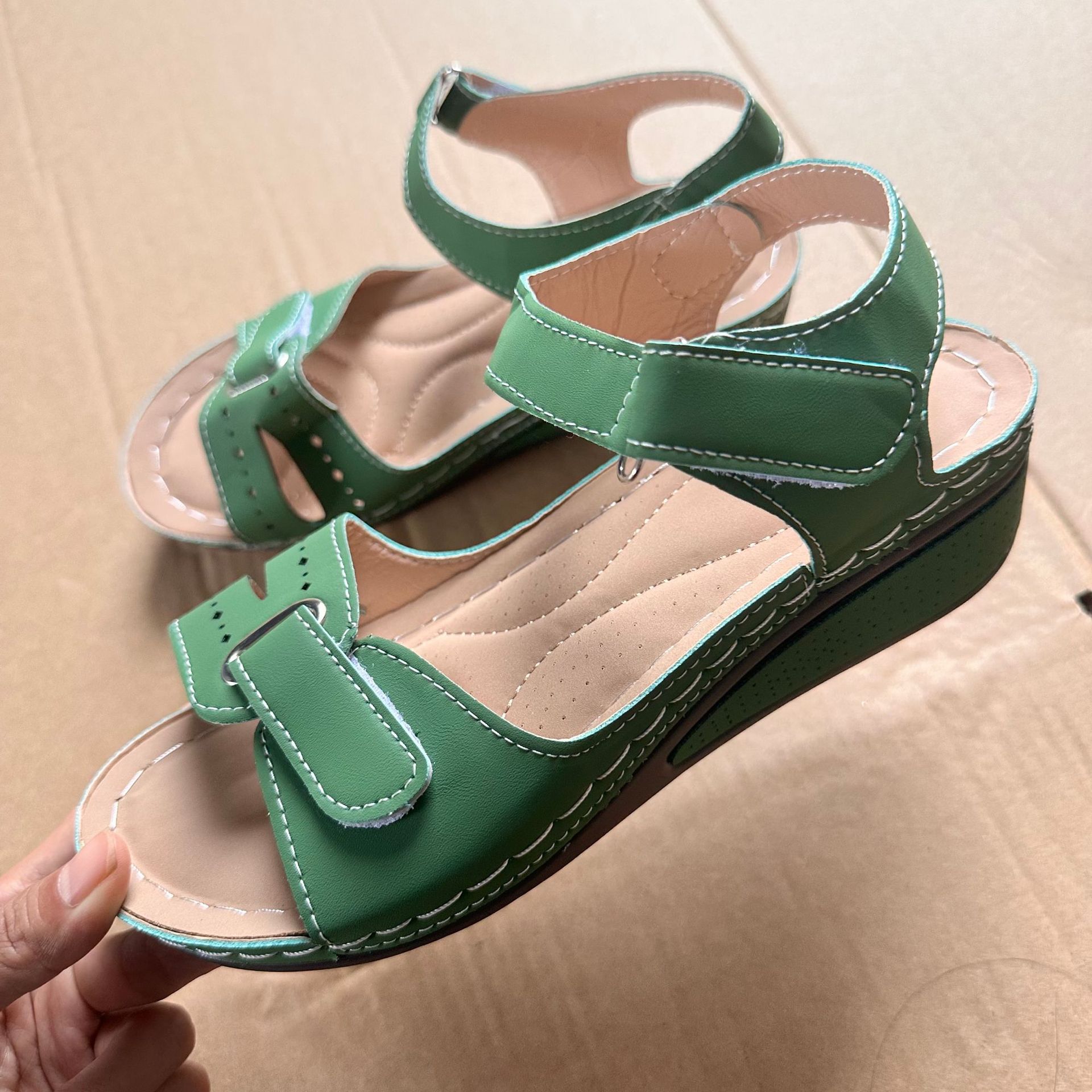 2025 новые женские сандалии для трансграничной внешней торговли на платформе с липучкой, толстой подошвой, большого размера, с одним ремешком, теперь доступны на Amazon