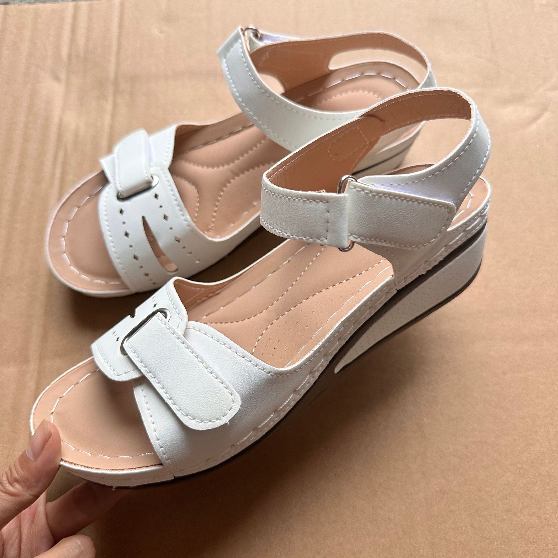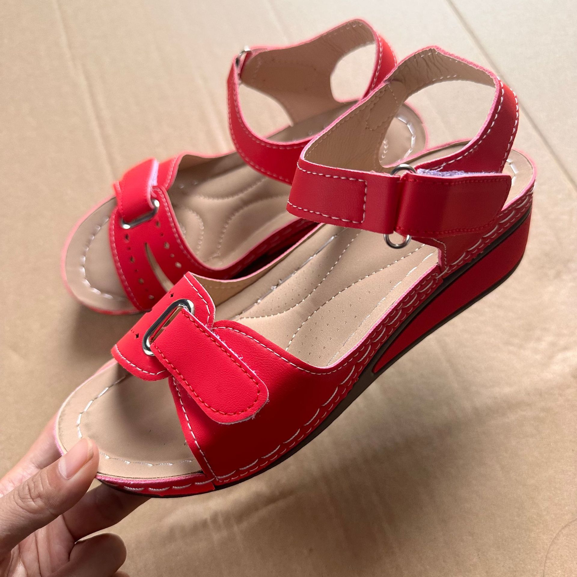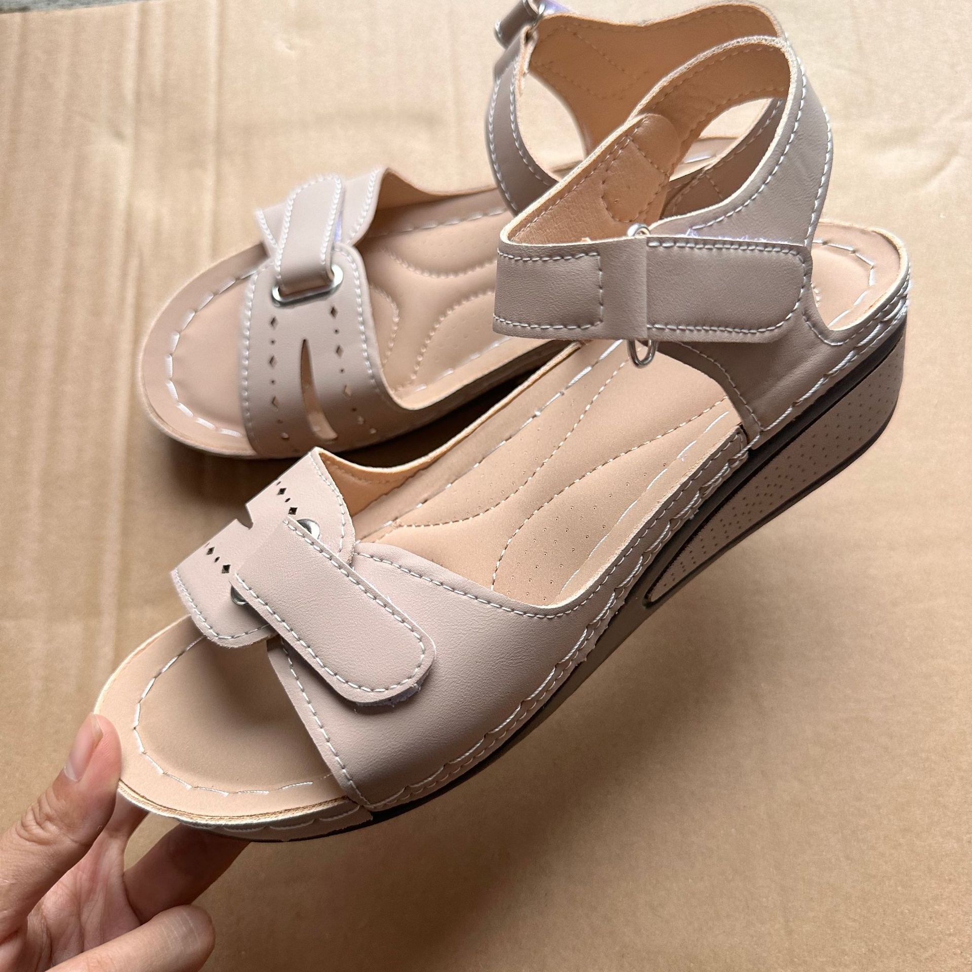 2025 новые женские сандалии для трансграничной внешней торговли на платформе с липучкой, толстой подошвой, большого размера, с одним ремешком, теперь доступны на Amazon
