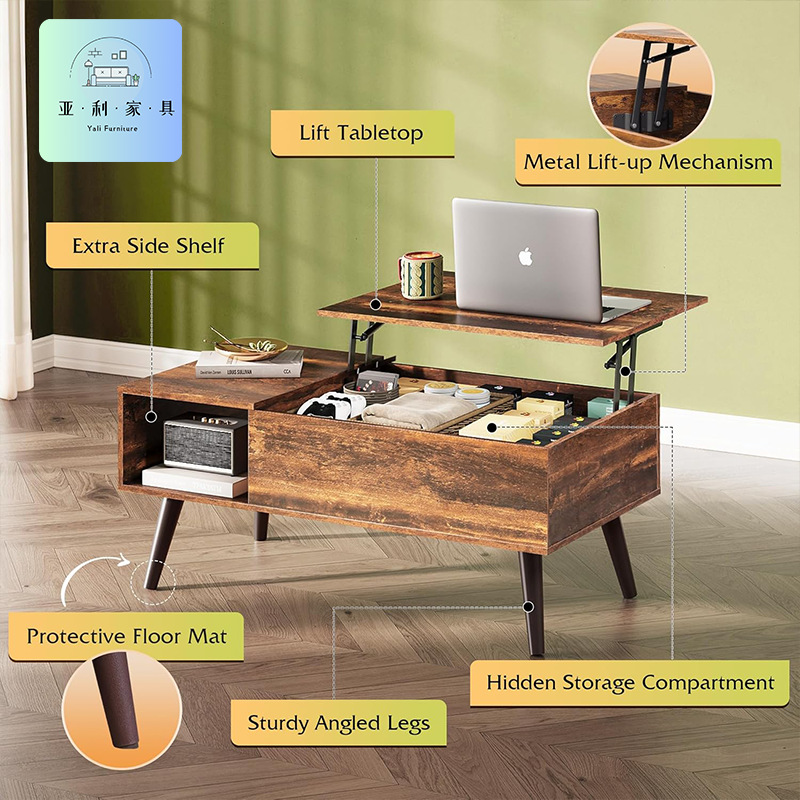 Подъемный журнальный столик для трансграничных поставок, мебельная фабрика Amazon, панельный журнальный столик, простой подъемный журнальный столик для хранения