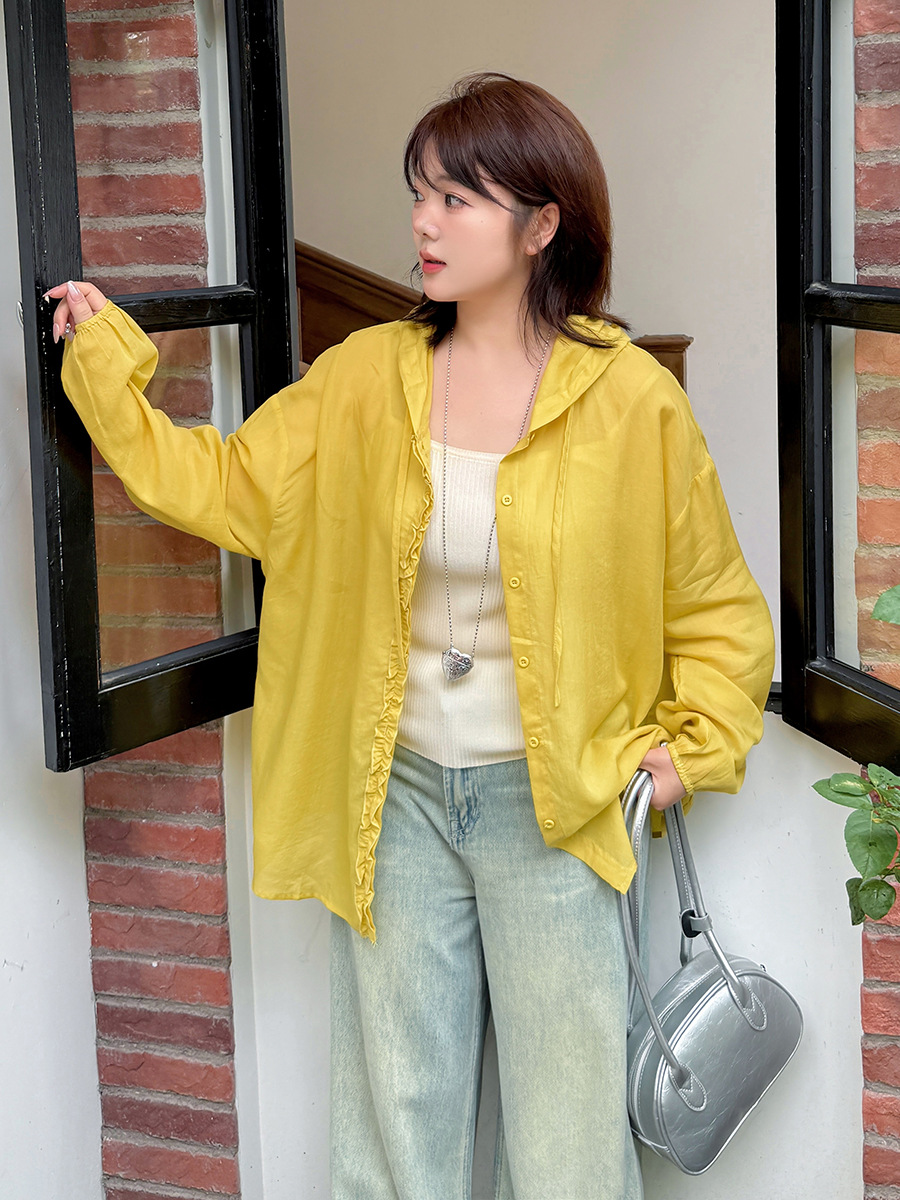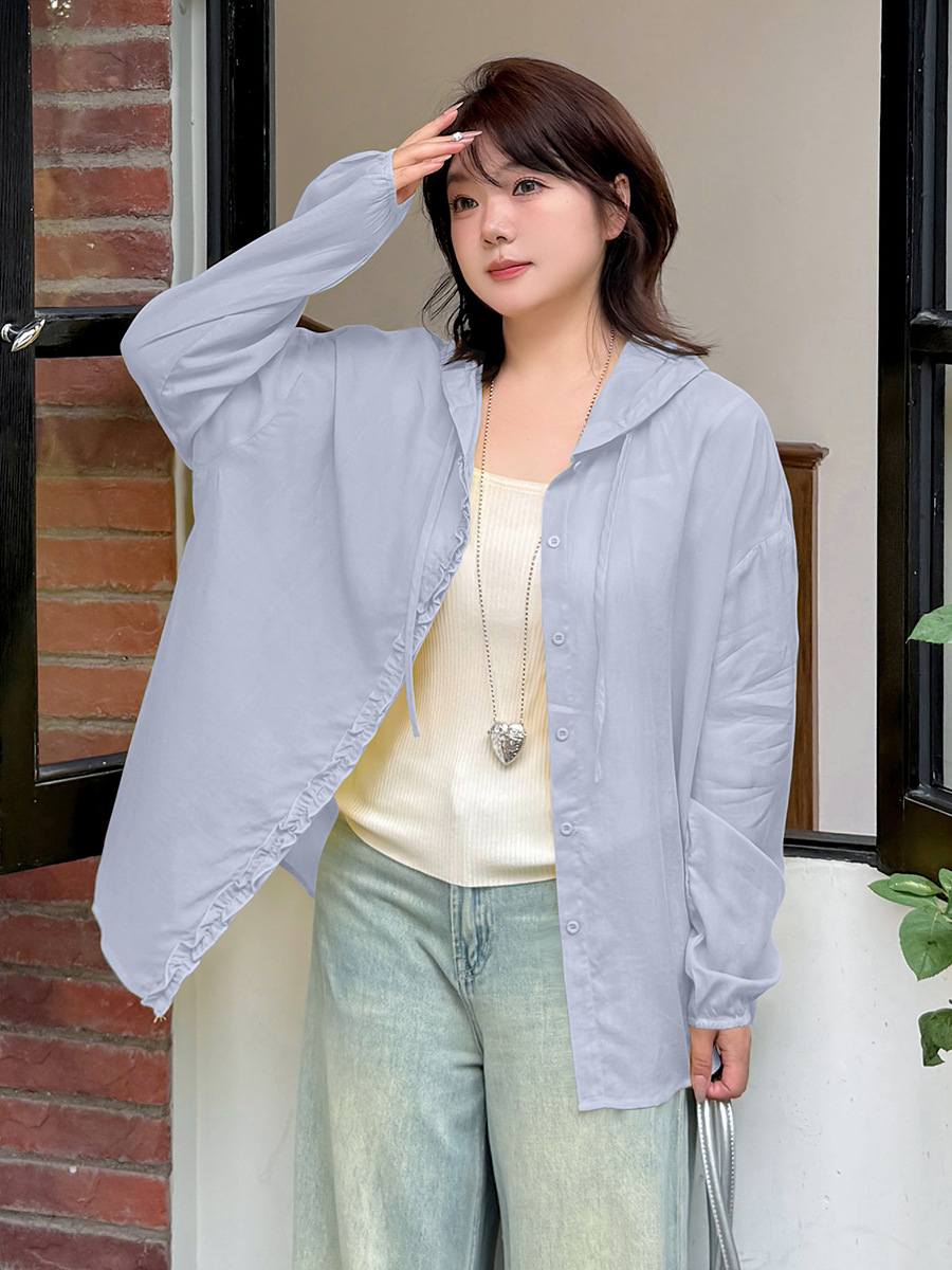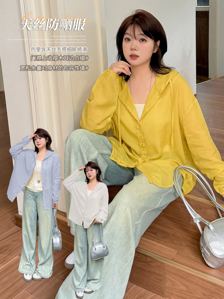 Женская солнцезащитная куртка Inno Plus Size из тенсела, летняя свободная толстовка с капюшоном в корейском стиле с рюшами 252555