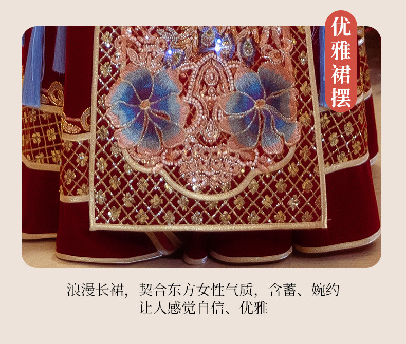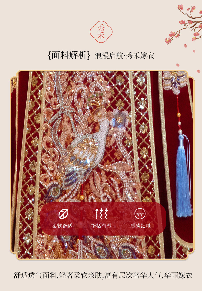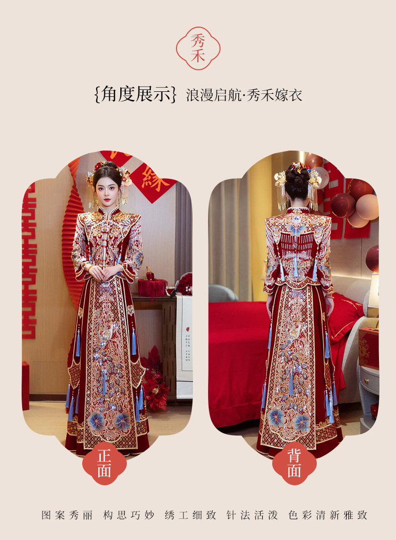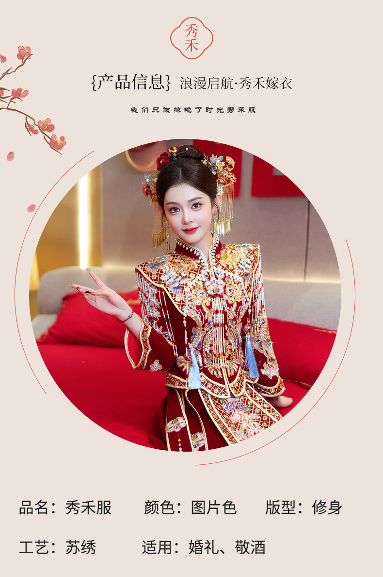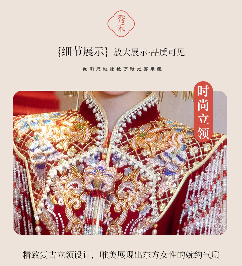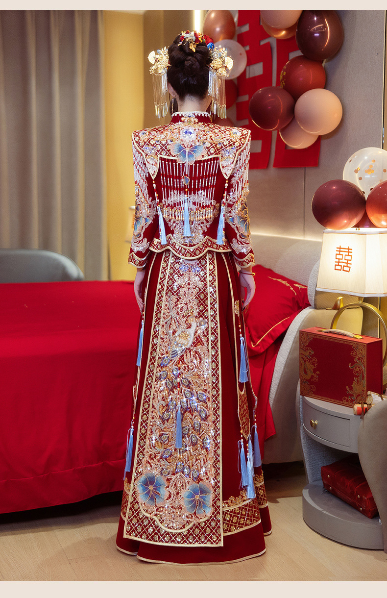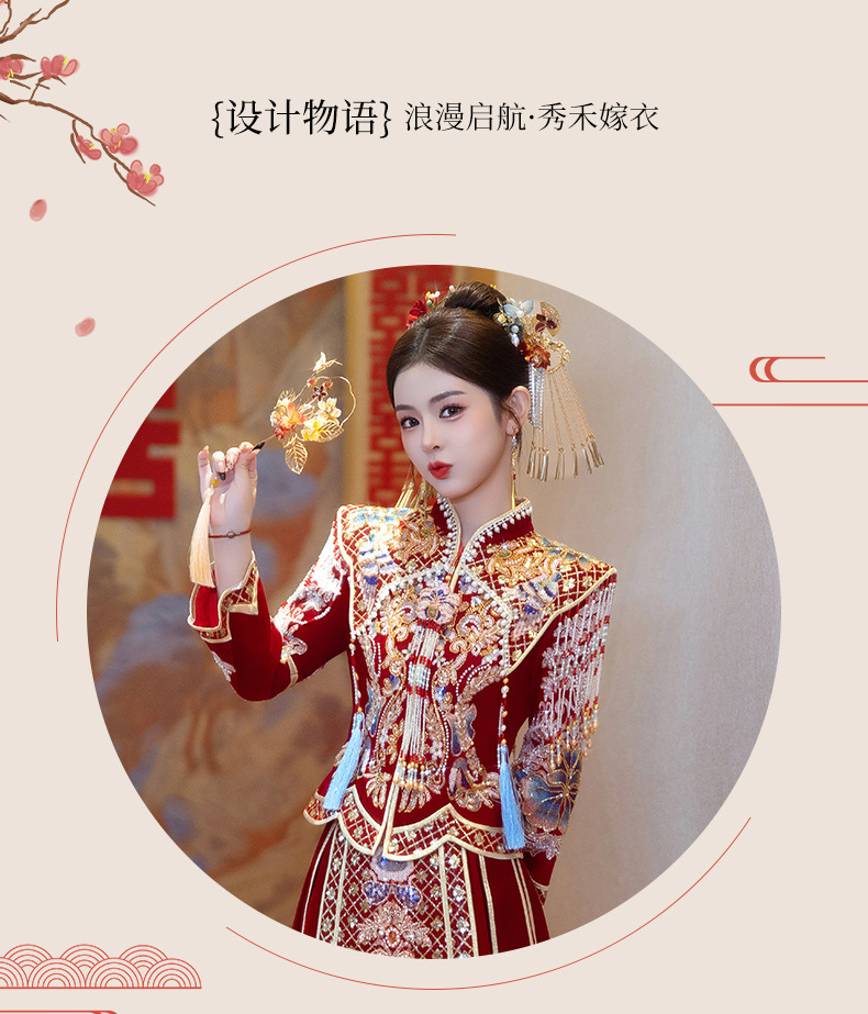 Новое свадебное платье в китайском стиле с элитным ощущением, элегантный костюм Xiuhe с воротником-стойкой, длинными рукавами и бархатным платьем для женщин.