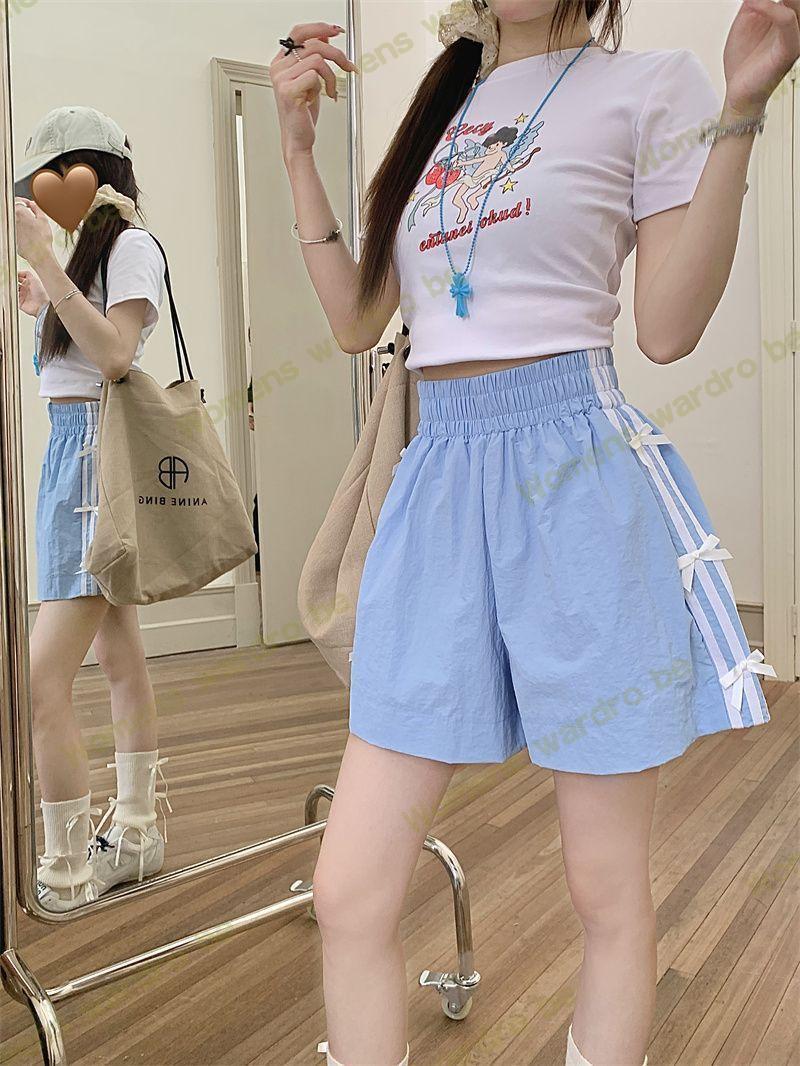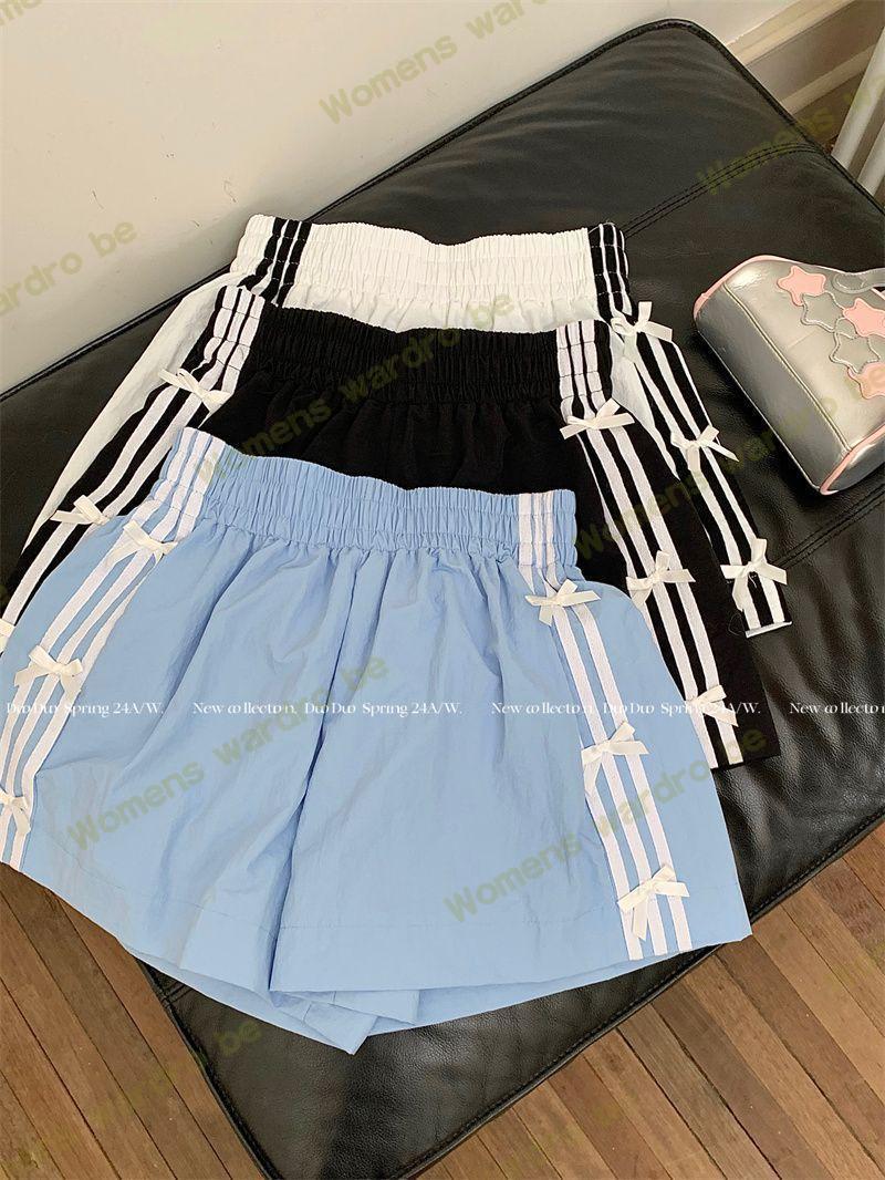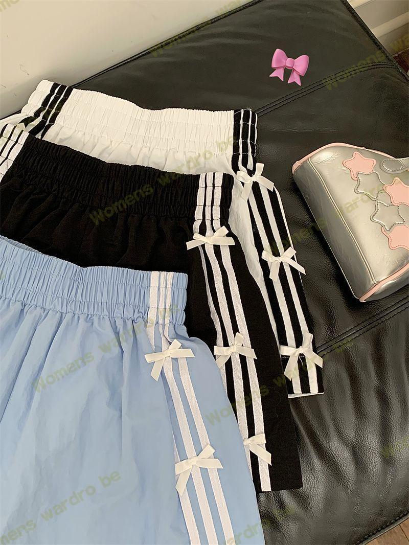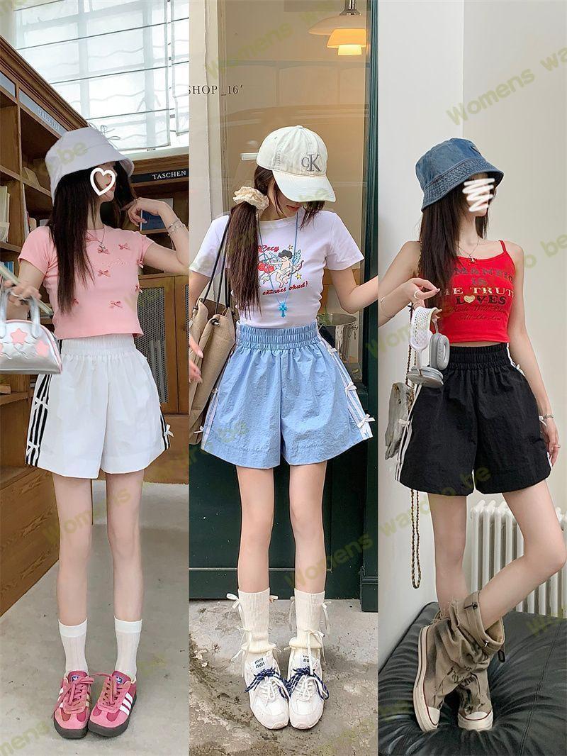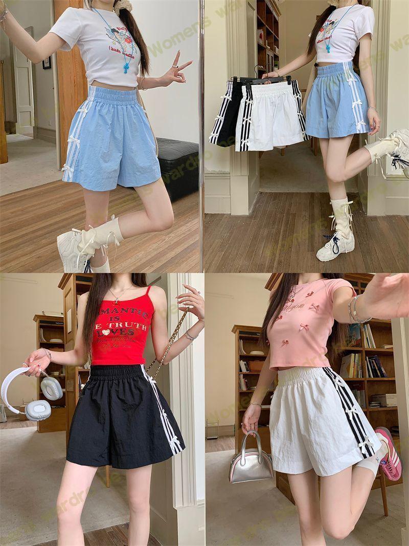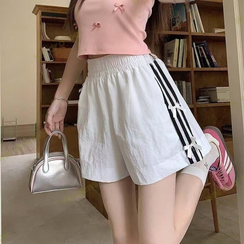 Женские летние шорты для уличной одежды, спортивные повседневные шорты в тонкую полоску с бантом для горячих девушек, модные утягивающие шорты прямого кроя.