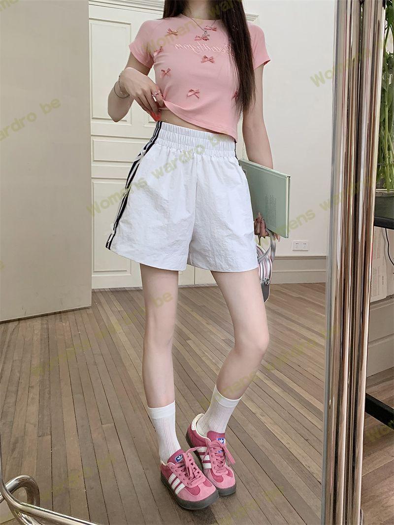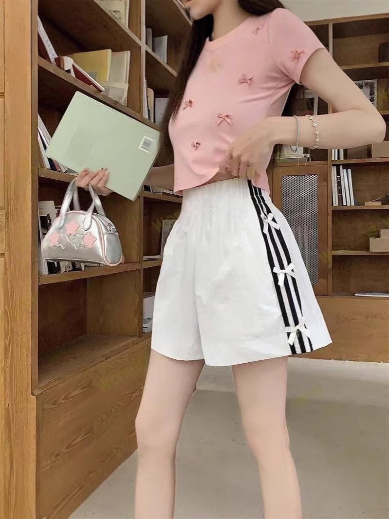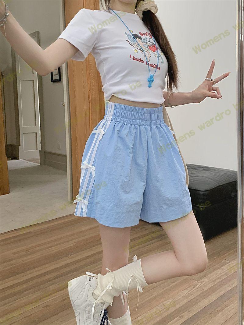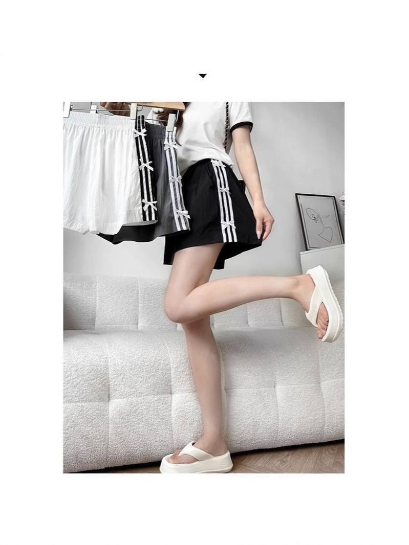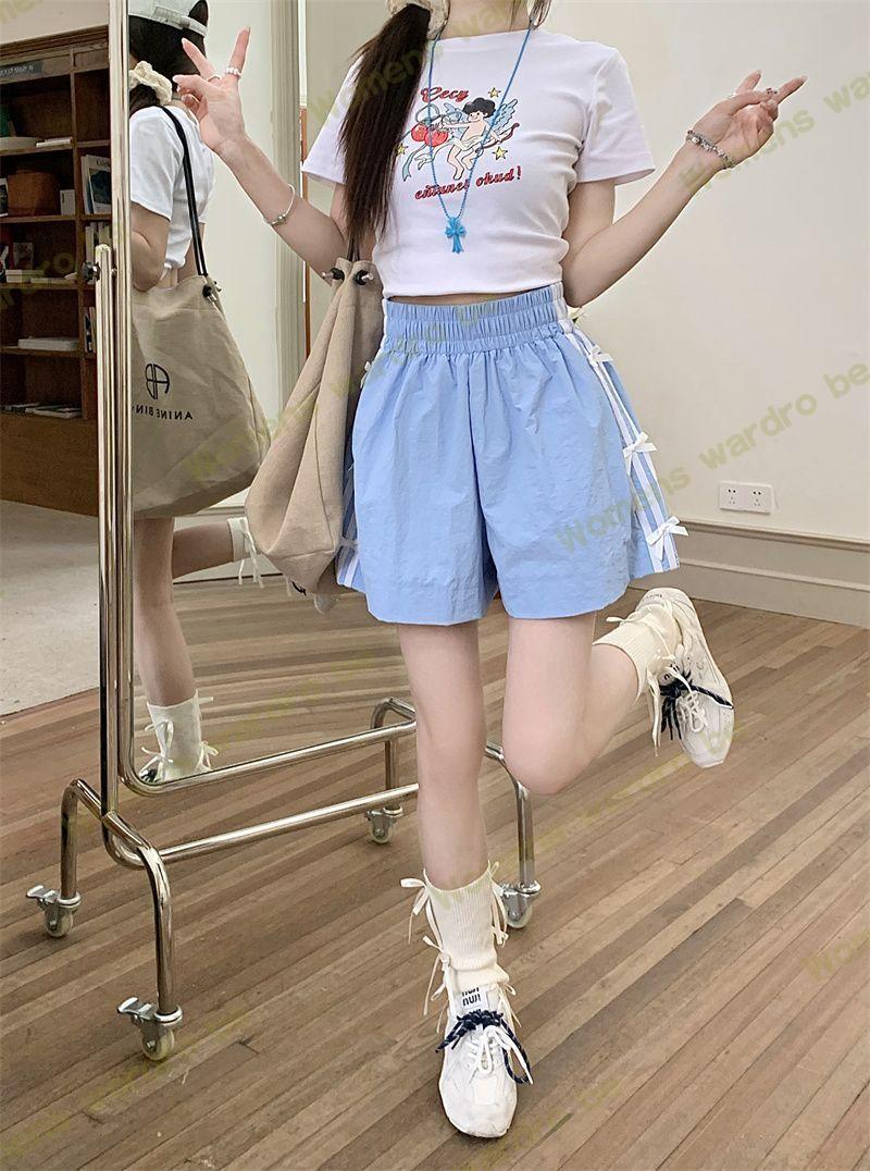 Женские летние шорты для уличной одежды, спортивные повседневные шорты в тонкую полоску с бантом для горячих девушек, модные утягивающие шорты прямого кроя.