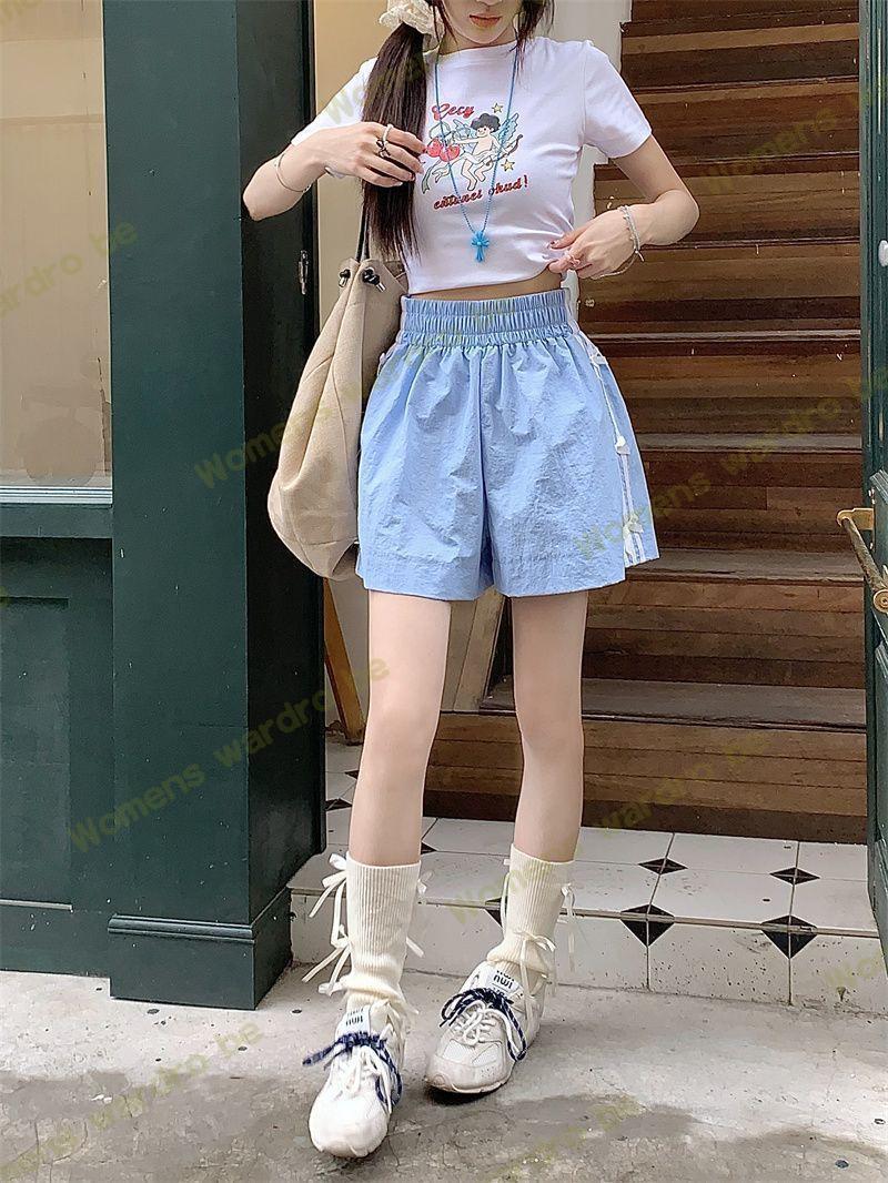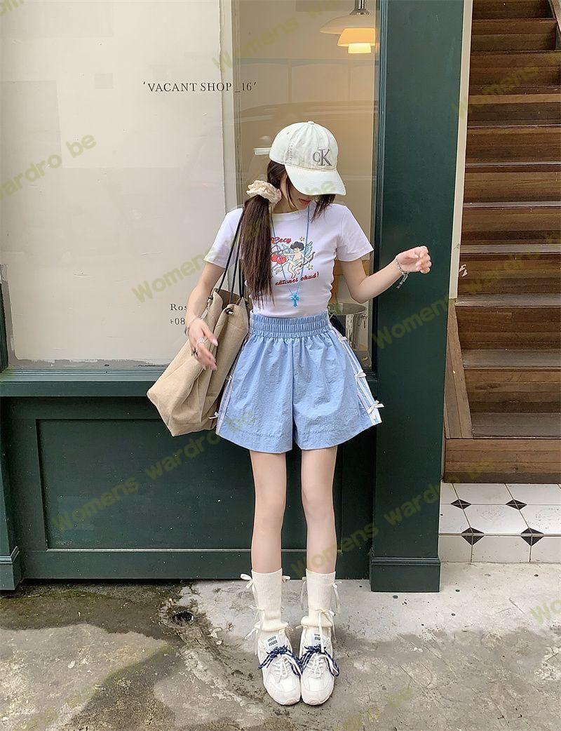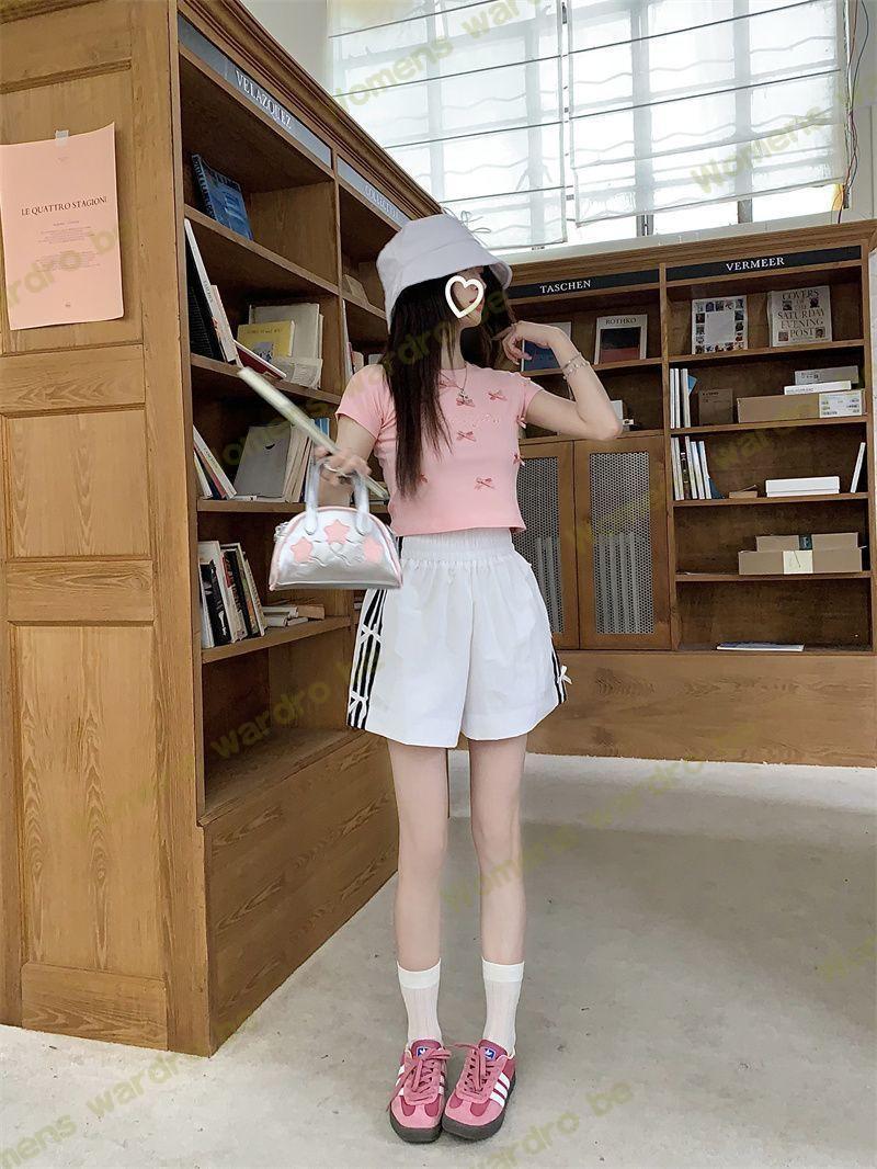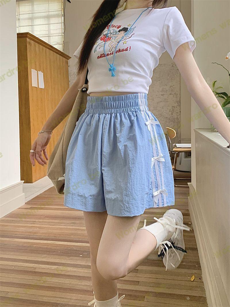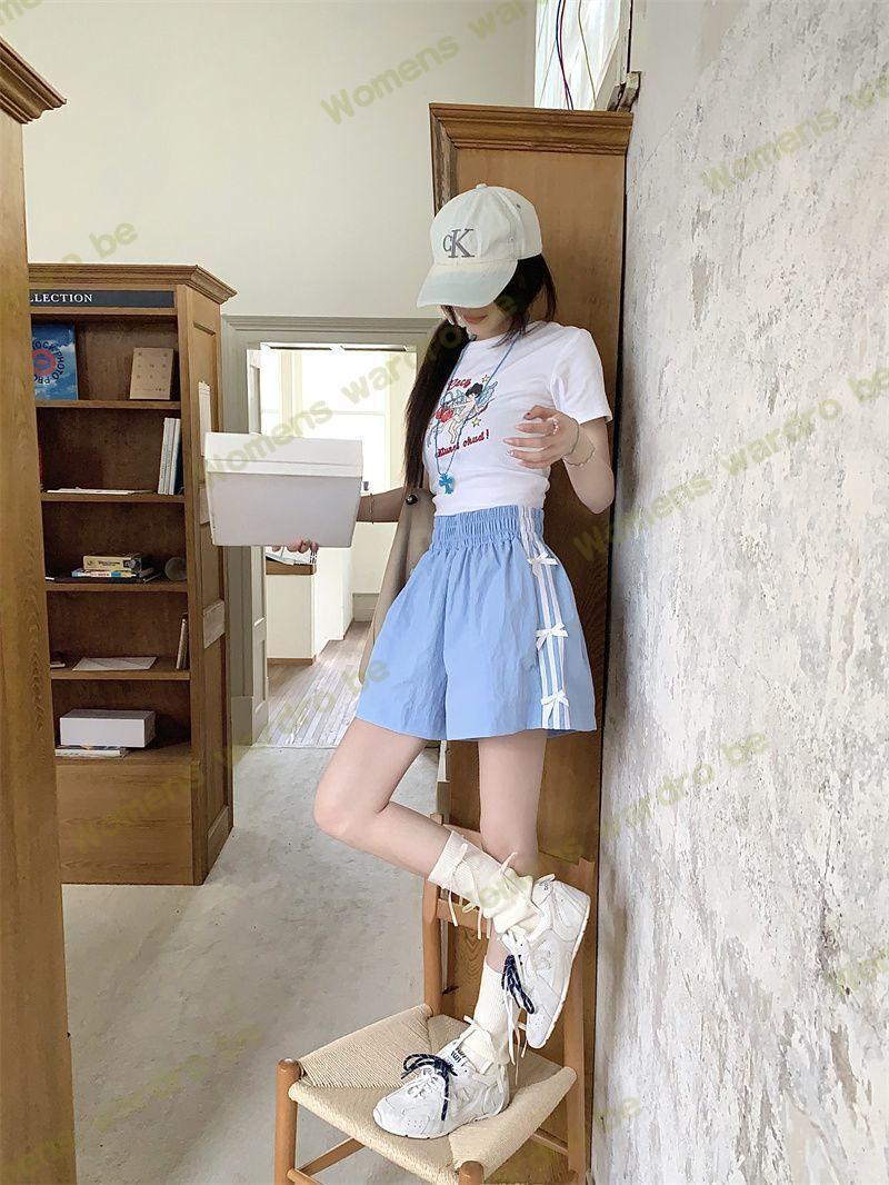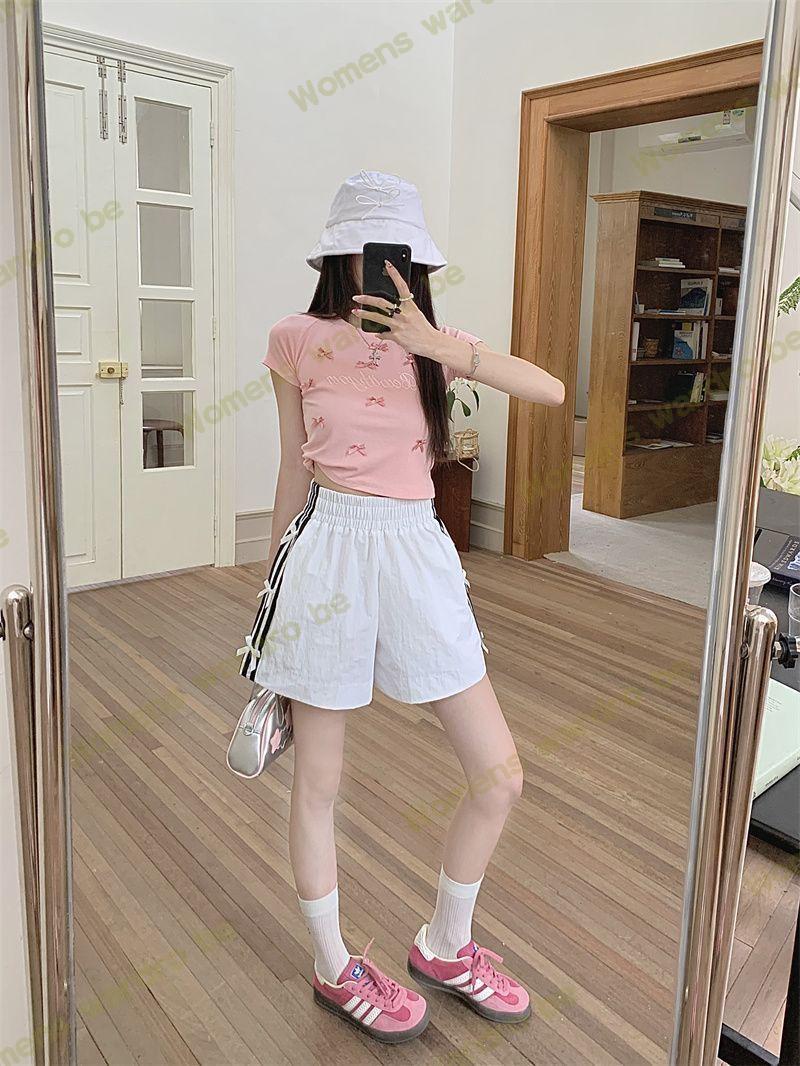 Женские летние шорты для уличной одежды, спортивные повседневные шорты в тонкую полоску с бантом для горячих девушек, модные утягивающие шорты прямого кроя.