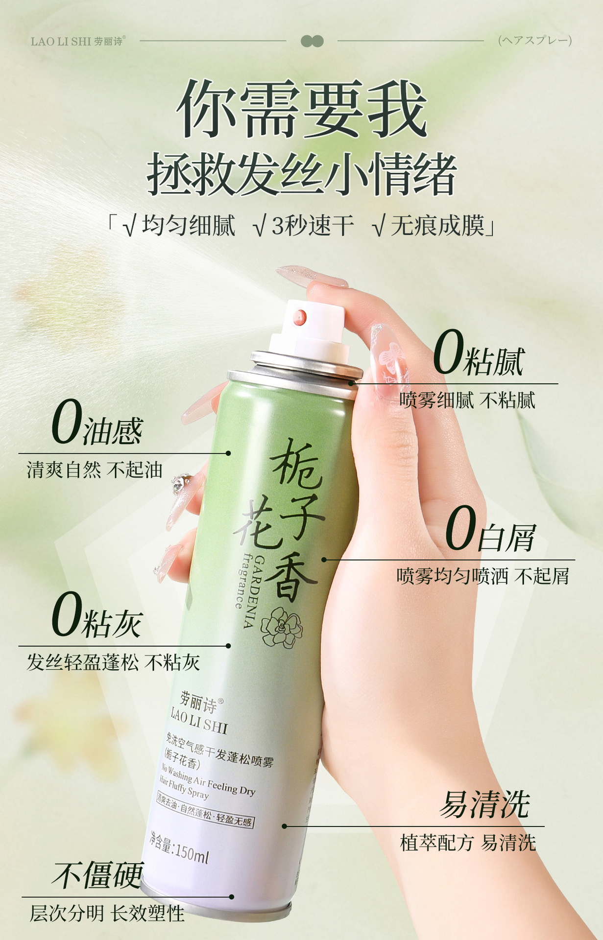 Пушистый спрей для волос Lauris, не требующий мытья и сушки на воздухе, прощается с плоскими головами и за считанные секунды превращается в высококачественный ароматный пушистый артефакт для волос.