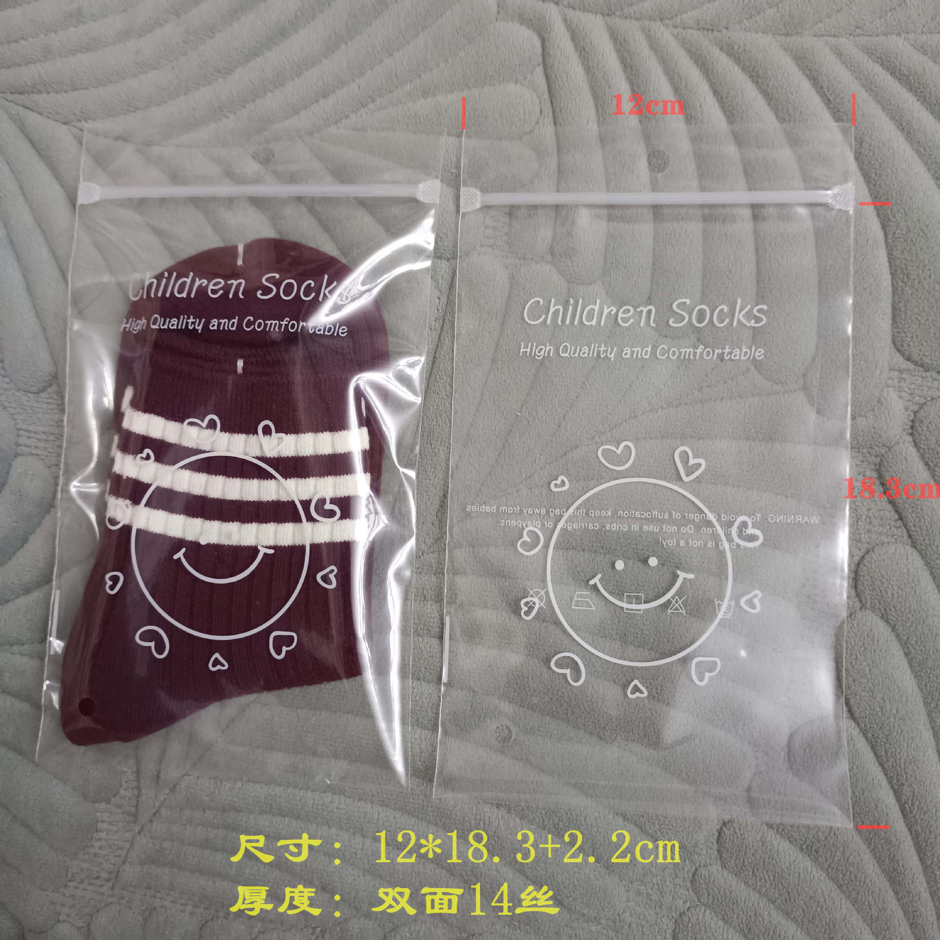 Высококачественные детские носки в индивидуальной упаковке, полиэтиленовый пакет на молнии с полосками костей, прозрачный утолщенный подвесной пакет с принтом, универсальная упаковка носков