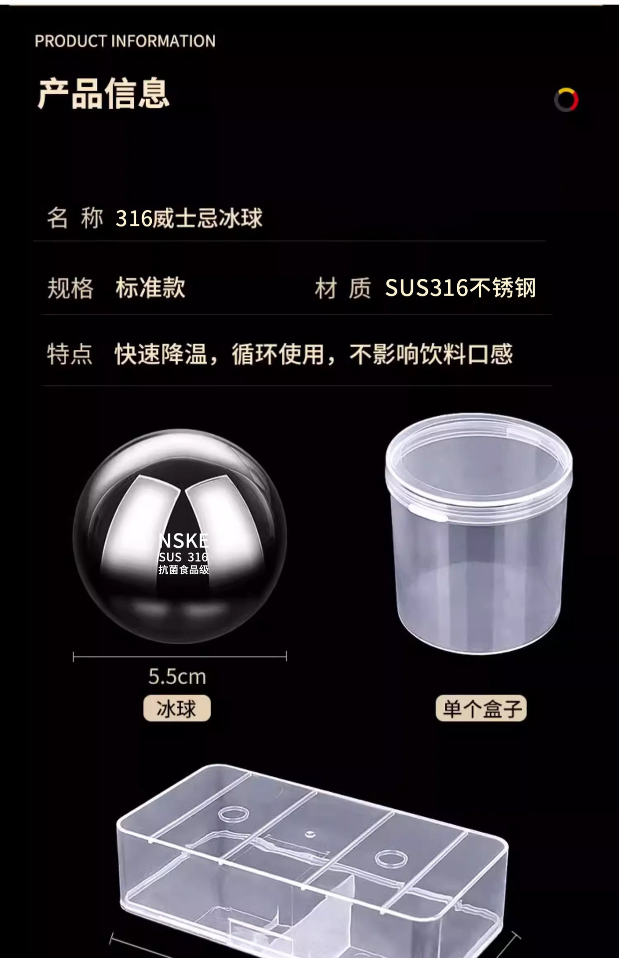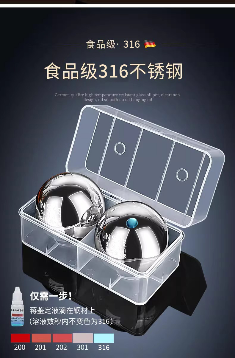 Нержавеющая сталь 304 — диаметр 5,5 см [одно зерно]; Нержавеющая сталь 304 — диаметр 3,8 см [одно зерно]; Нержавеющая сталь 304 — диаметр 3,8 см [одно зерно + ящик для хранения]; Нержавеющая сталь 304 — диаметр 5,5 см [одно зерно + ящик для хранения]; Нержавеющая сталь 304 - диаметр 5,5 см [две штуки + ящик для хранения]; Нержавеющая сталь 304 — диаметр 5,5 см [две штуки + ящик для хранения + зажим]
