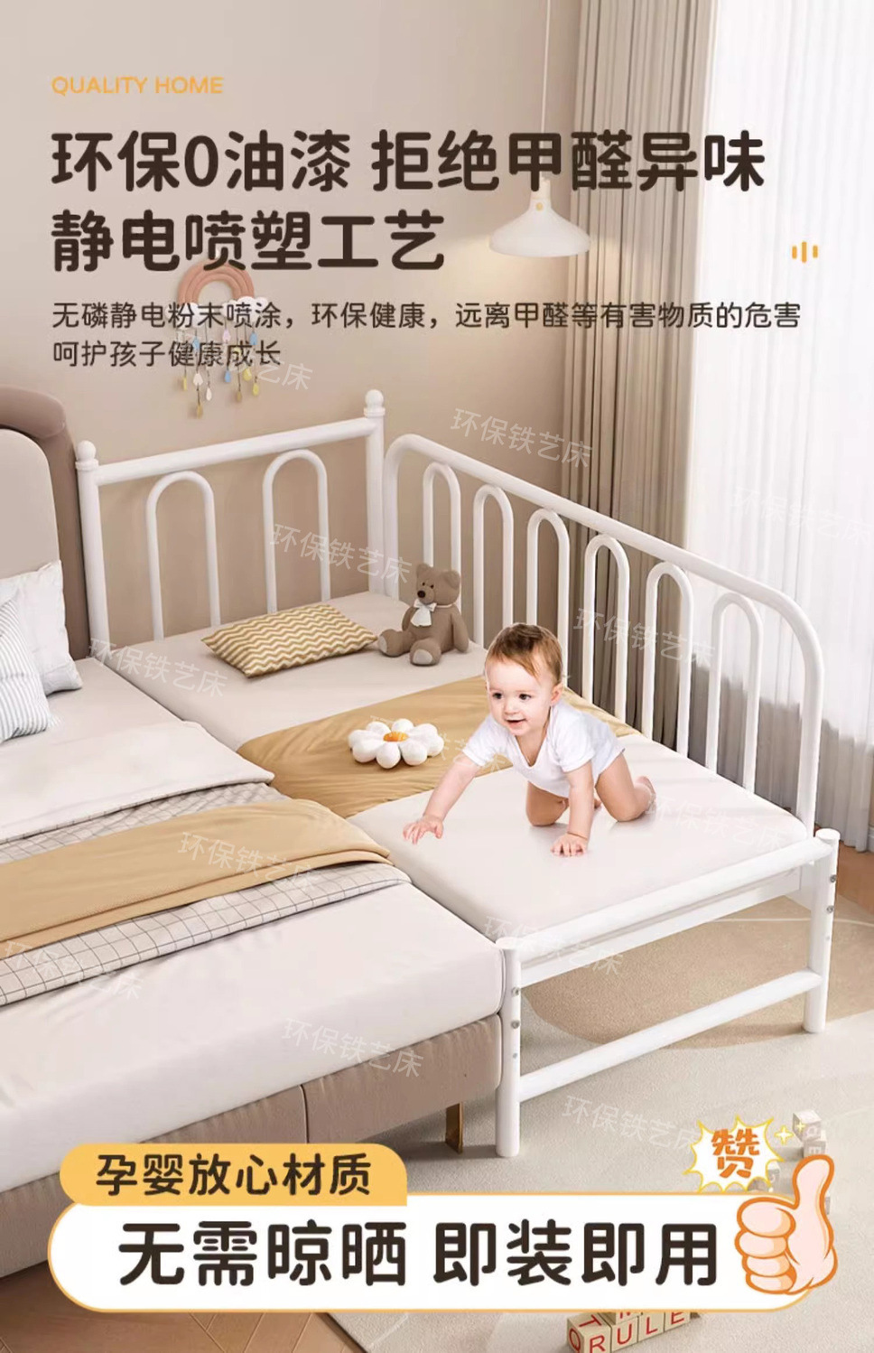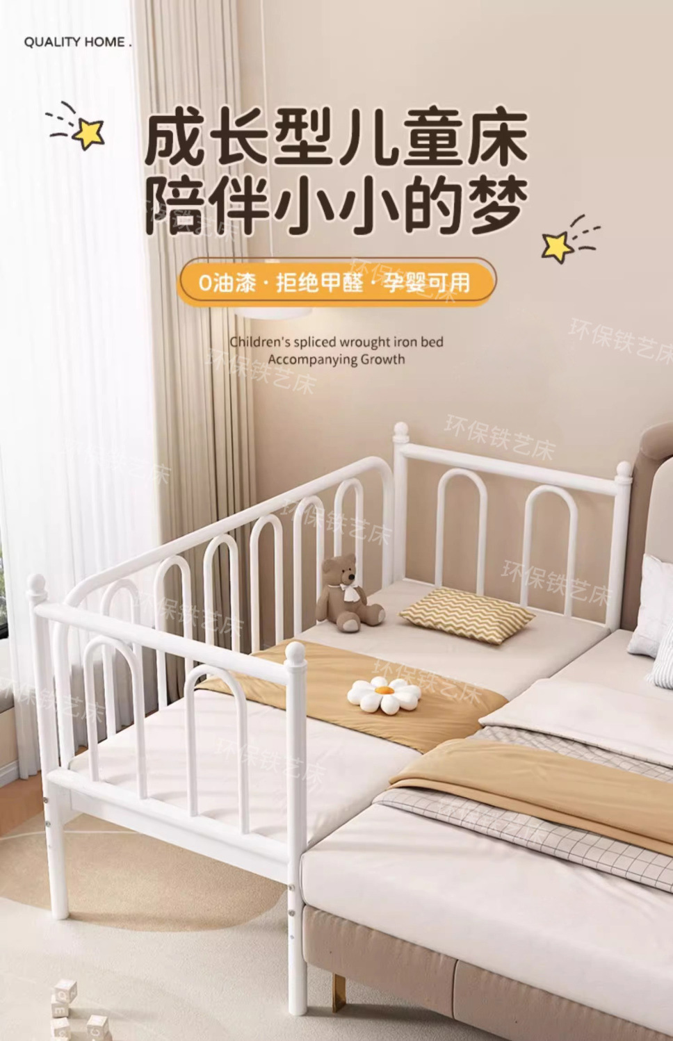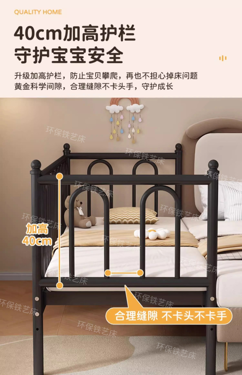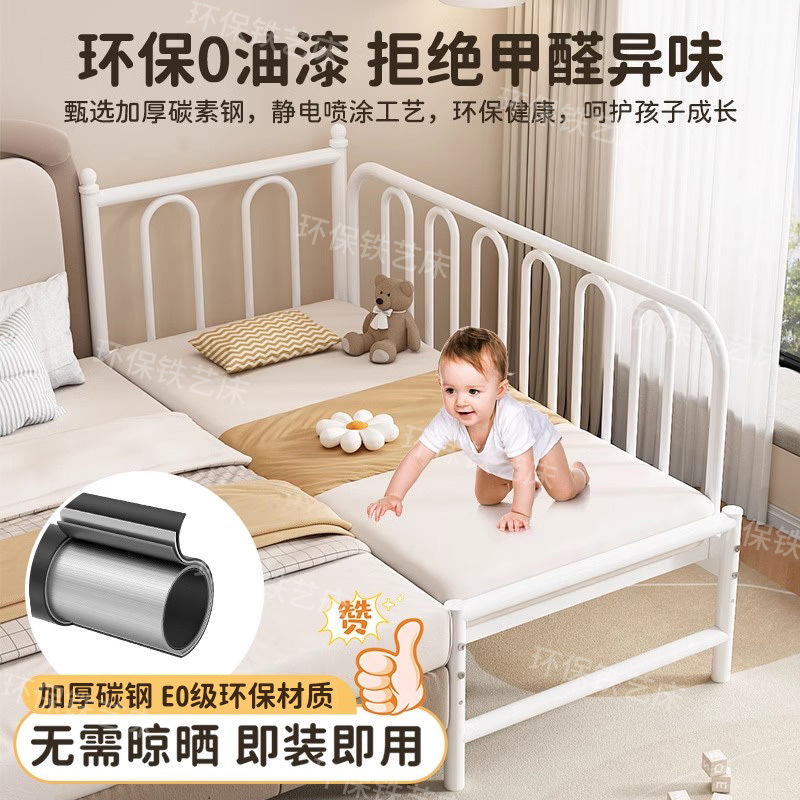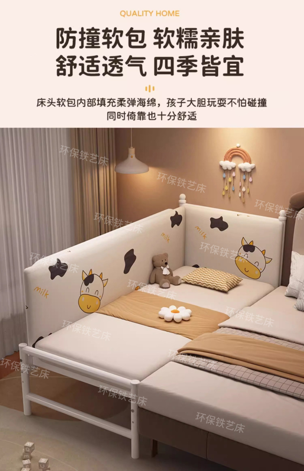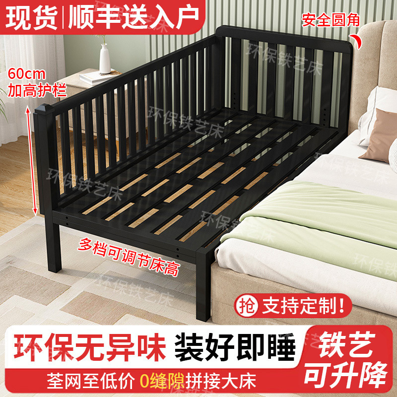 Детская кровать из кованого железа с подъемными ограждениями, расширенной прикроватной тумбочкой, расширенной мягкой детской кроватью для доставки