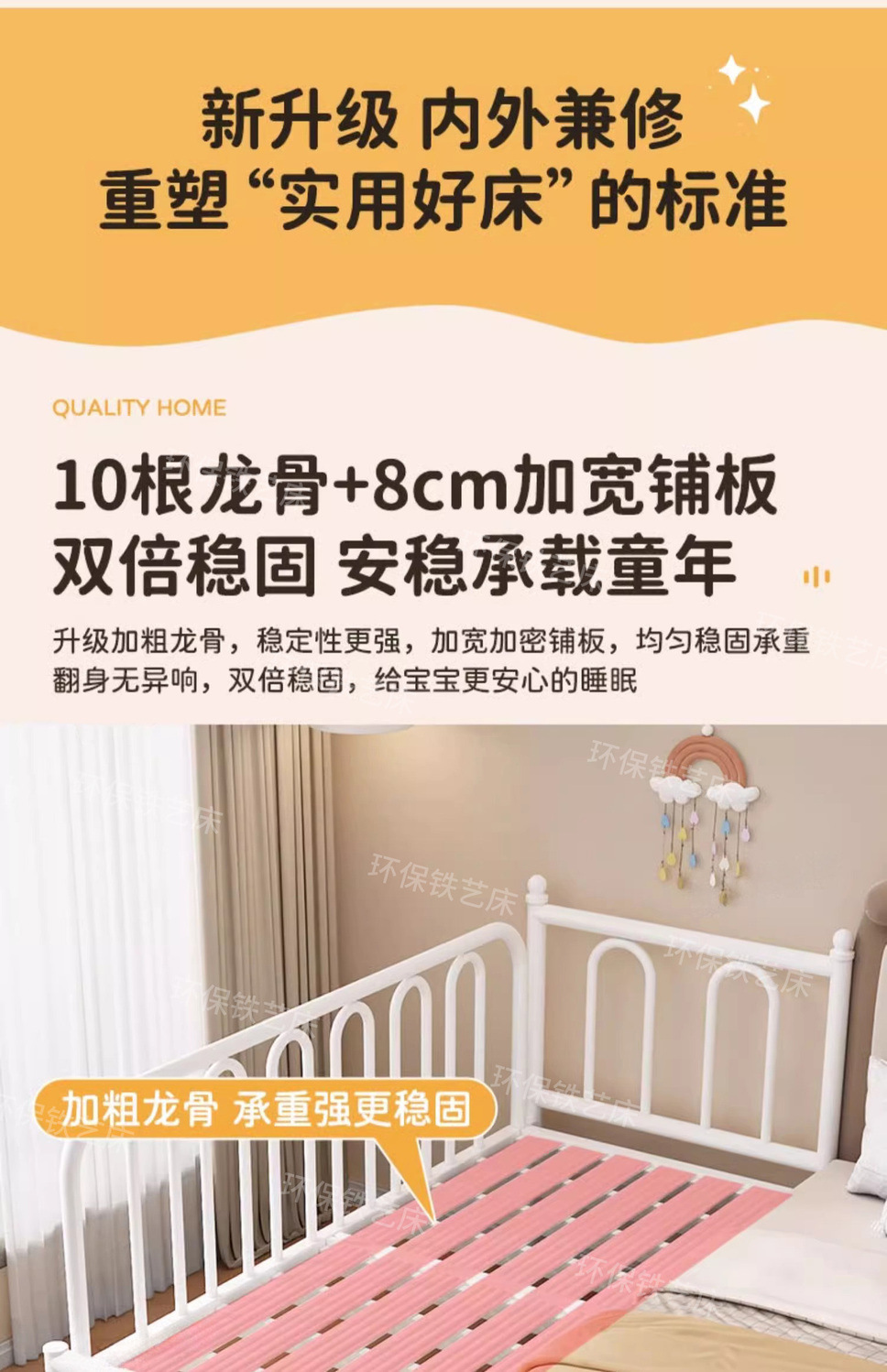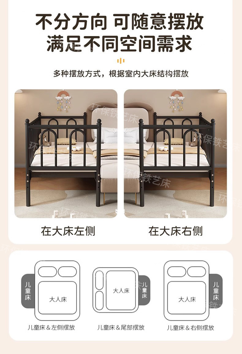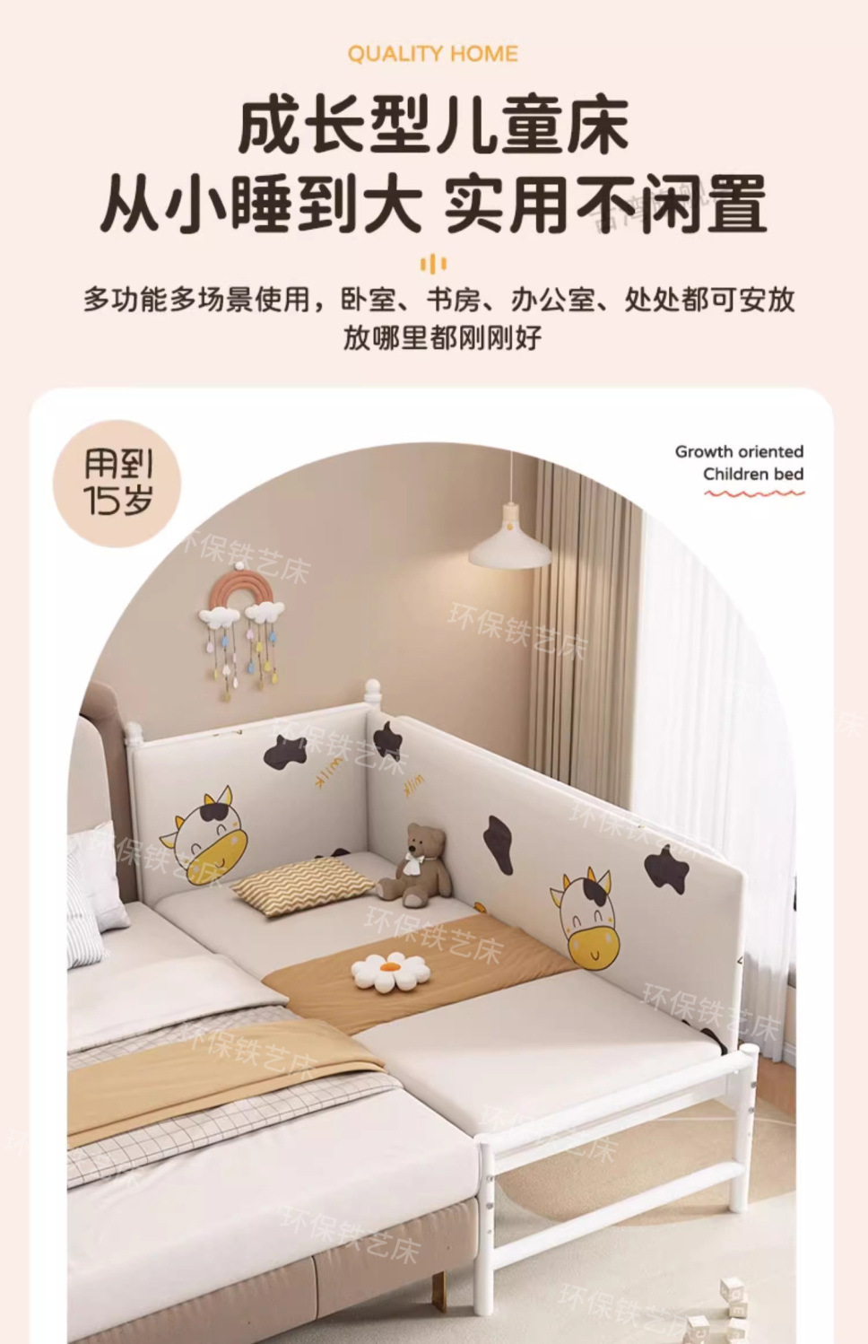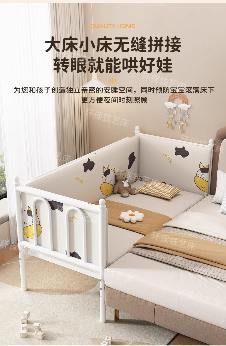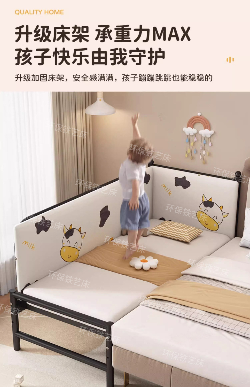 Детская кровать из кованого железа с подъемными ограждениями, расширенной прикроватной тумбочкой, расширенной мягкой детской кроватью для доставки