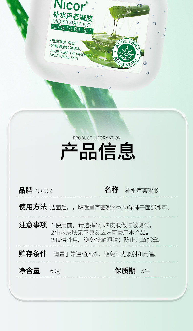 Nicor алоэ вера гель 60 г лето алоэ вера гель увлажняющий завод спот оптом для студентов мягкое и глубокое увлажнение