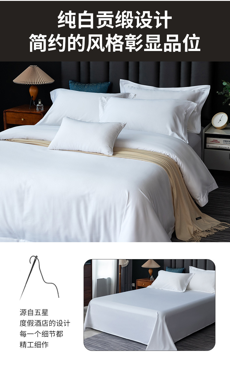 Постельный комплект из четырех предметов Xduo для гостиниц и пансионов, 60-нитка, белый сатин, фабричное производство.