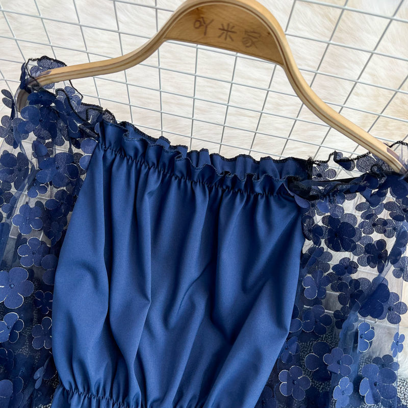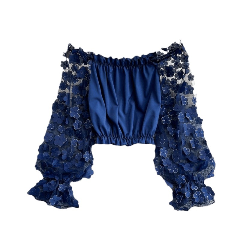 Женская шифоновая рубашка на одно плечо с трехмерным цветком и прозрачной сеткой, модный короткий топ с открытыми плечами, летний