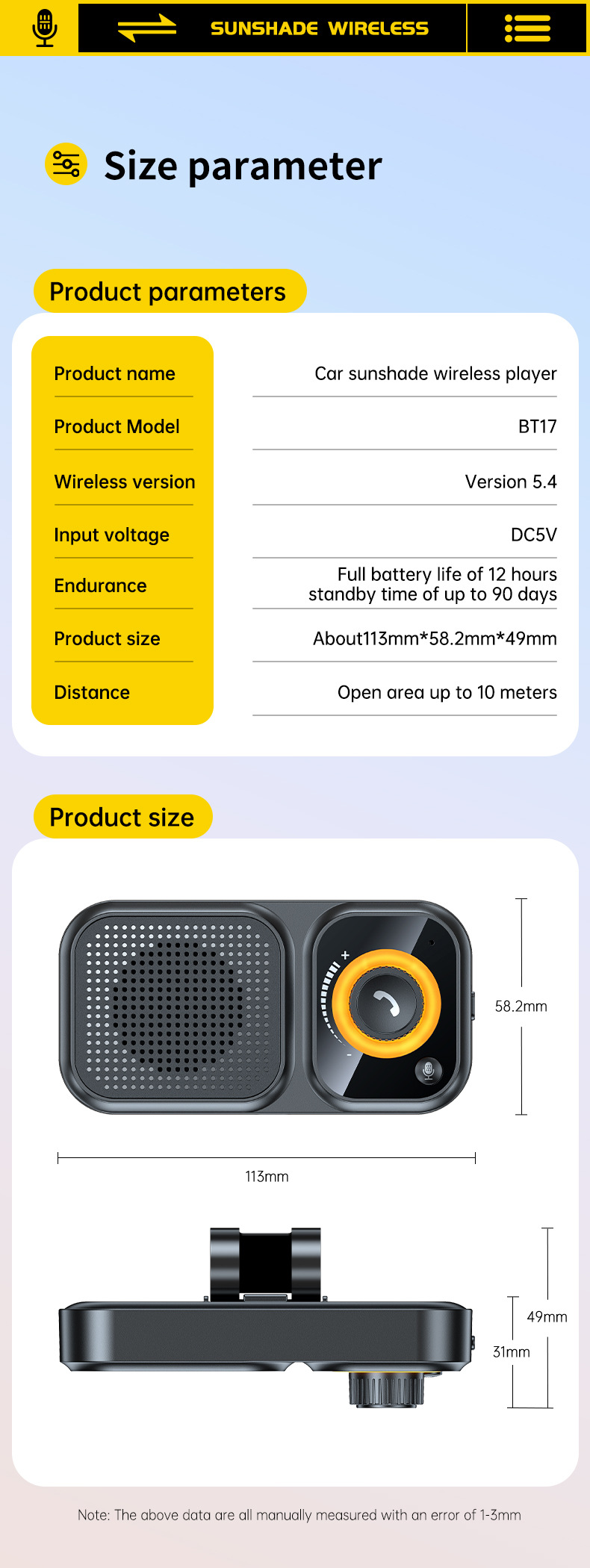 BT17 солнцезащитный козырек Bluetooth автомобильная гарнитура для вызова навигации вибрация загрузки SIRI голосовой динамик 3 Вт